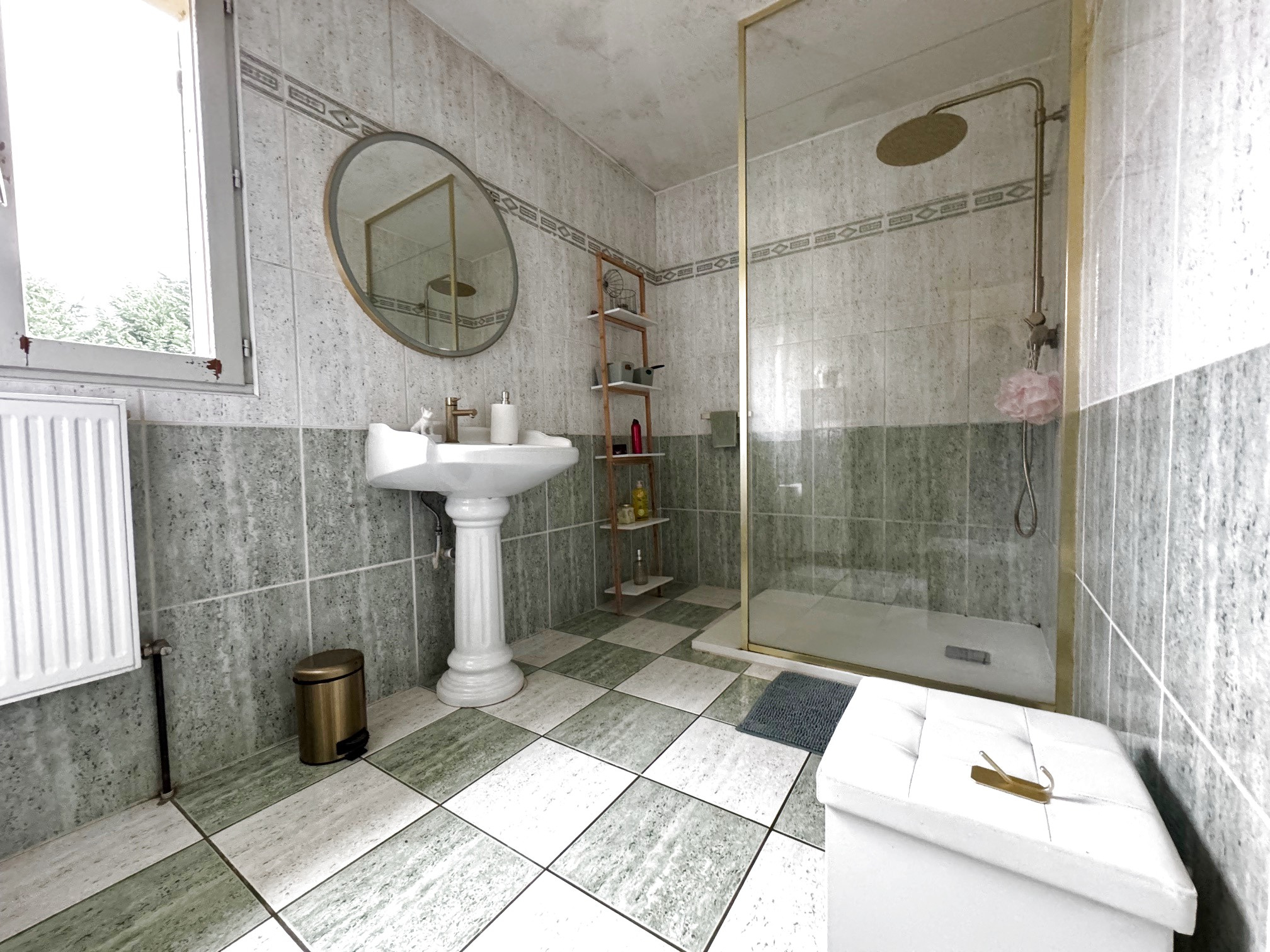 ...Au premier étage un palier désservant 3 chambres dont 2 en enfilades...