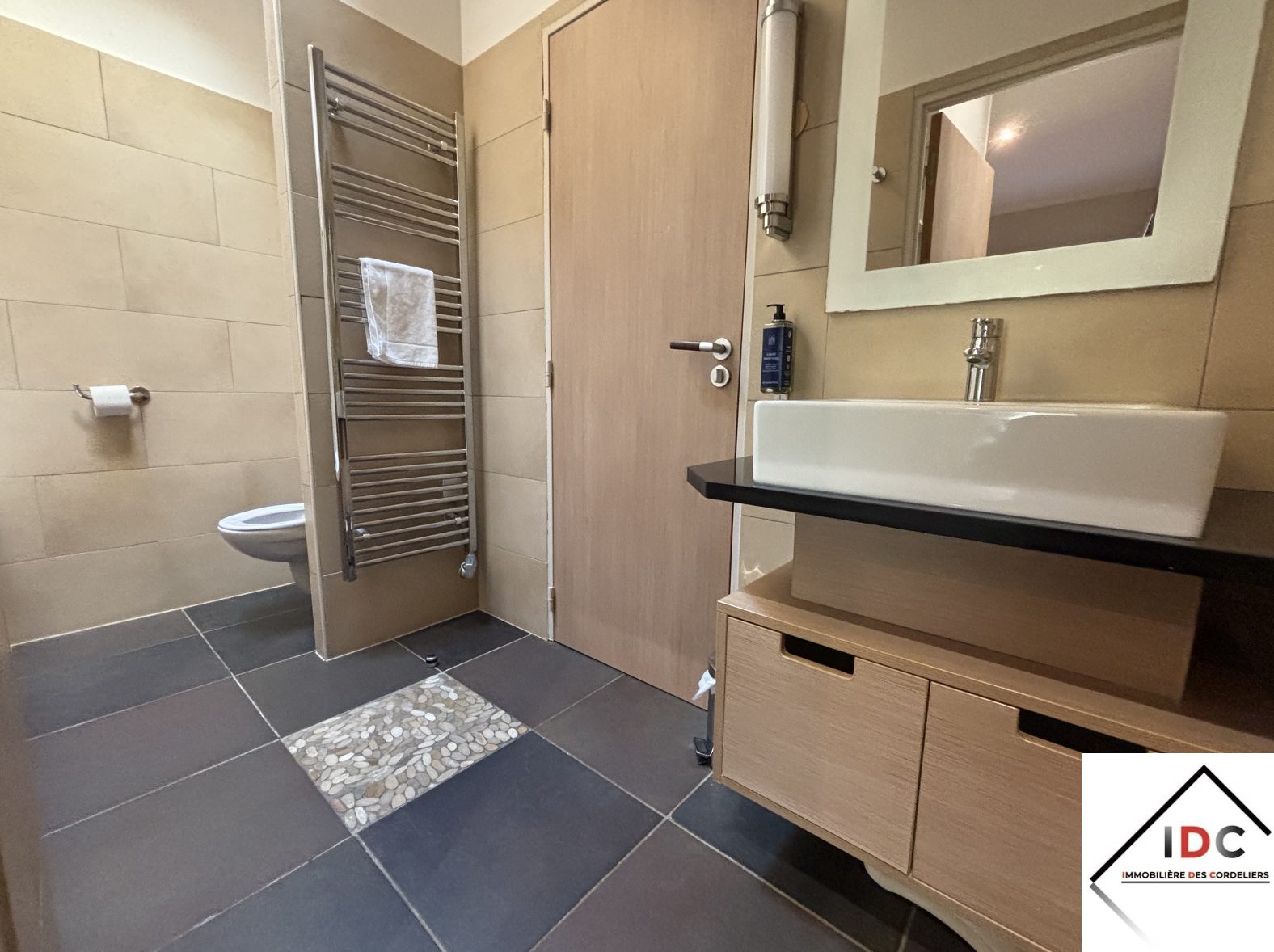 ...Elle comprend: entrée, wc individuel, séjour ouvert sur cuisine équipée, 2 chambres, une salle de...