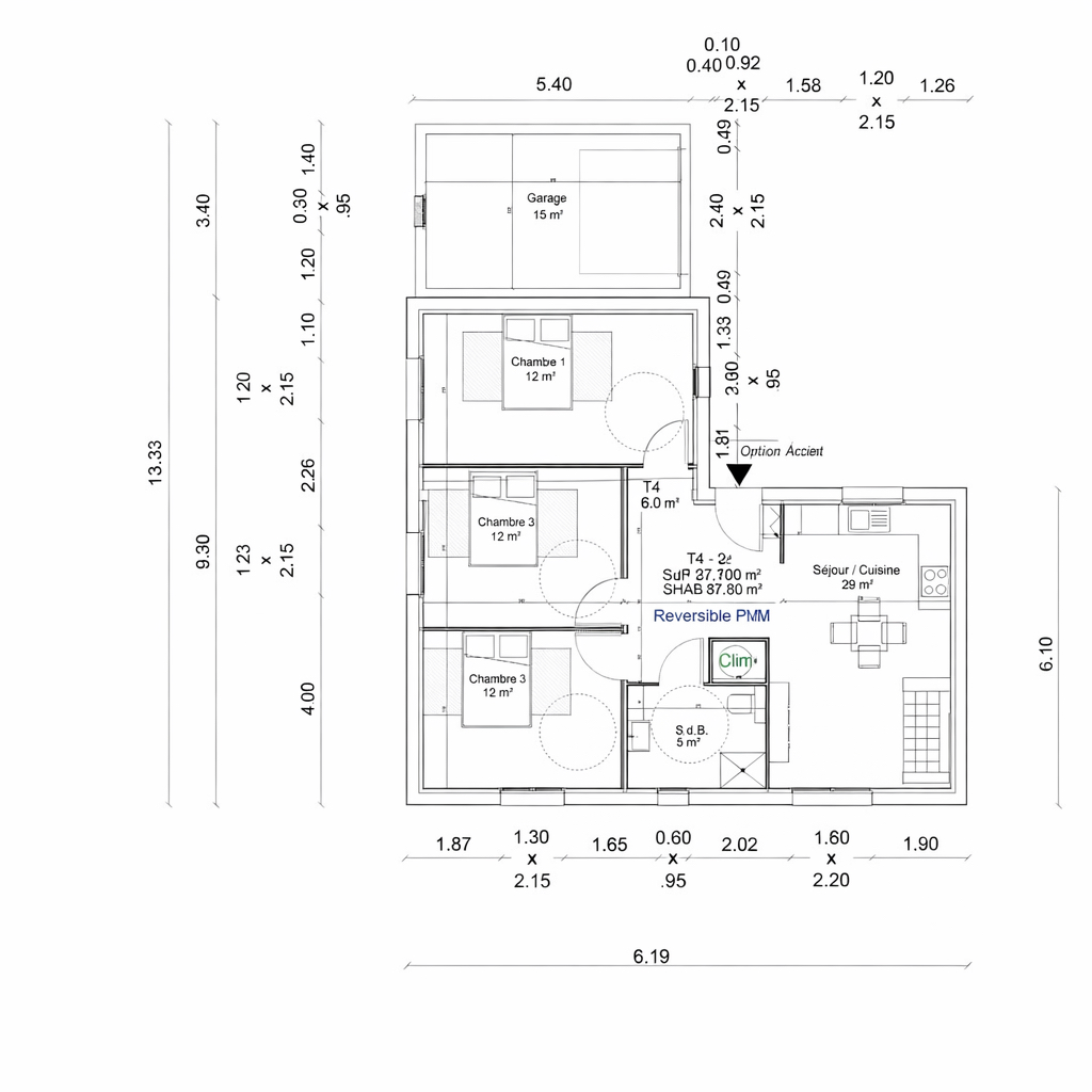 ...Ce bien de plain pied en bon état se compose de 4 pièces, dont 3 chambres , un bel espace de vie...