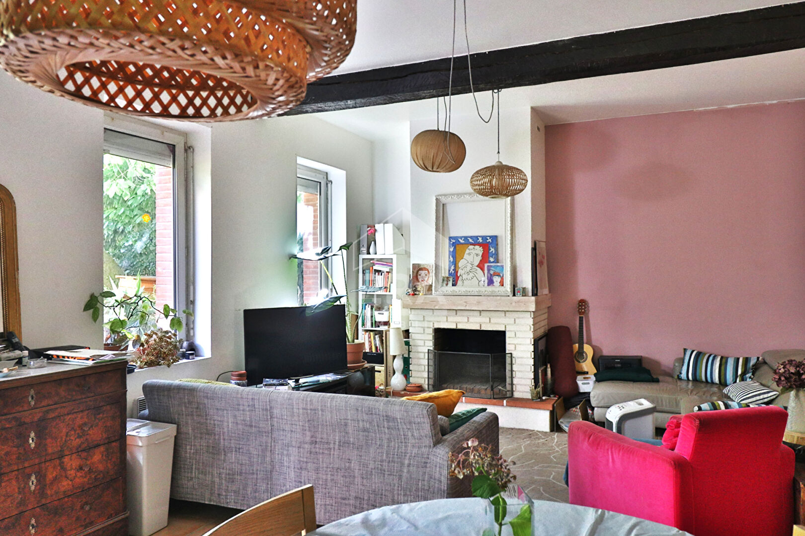 ...Vous apprécierez sa vaste pièce de vie avec cuisine ouverte et cheminée...
