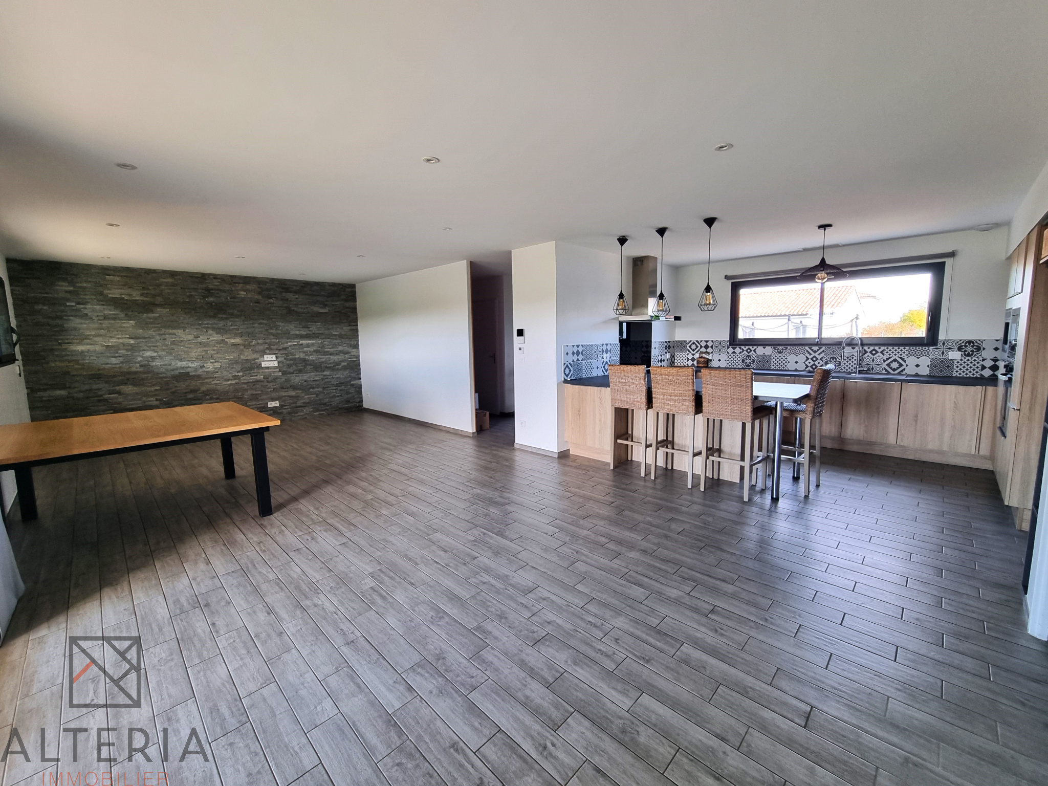 ...L'entrée de la maison s'ouvre sur un grand espace de vie de 40m², une cuisine entièrement équipée...