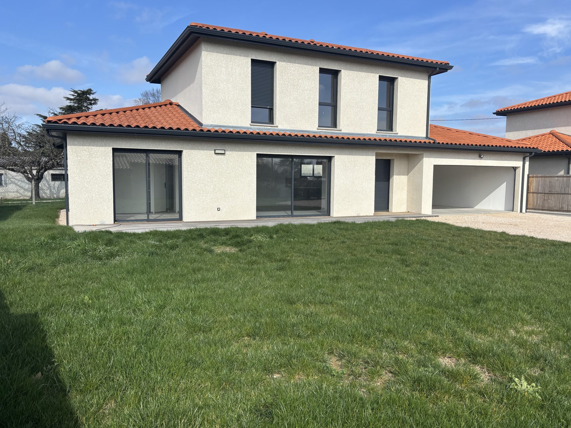 ... 2 chambres avec placard, 2 salles de bain et un coin bureau. A l'extérieur un double garage de 50 m...