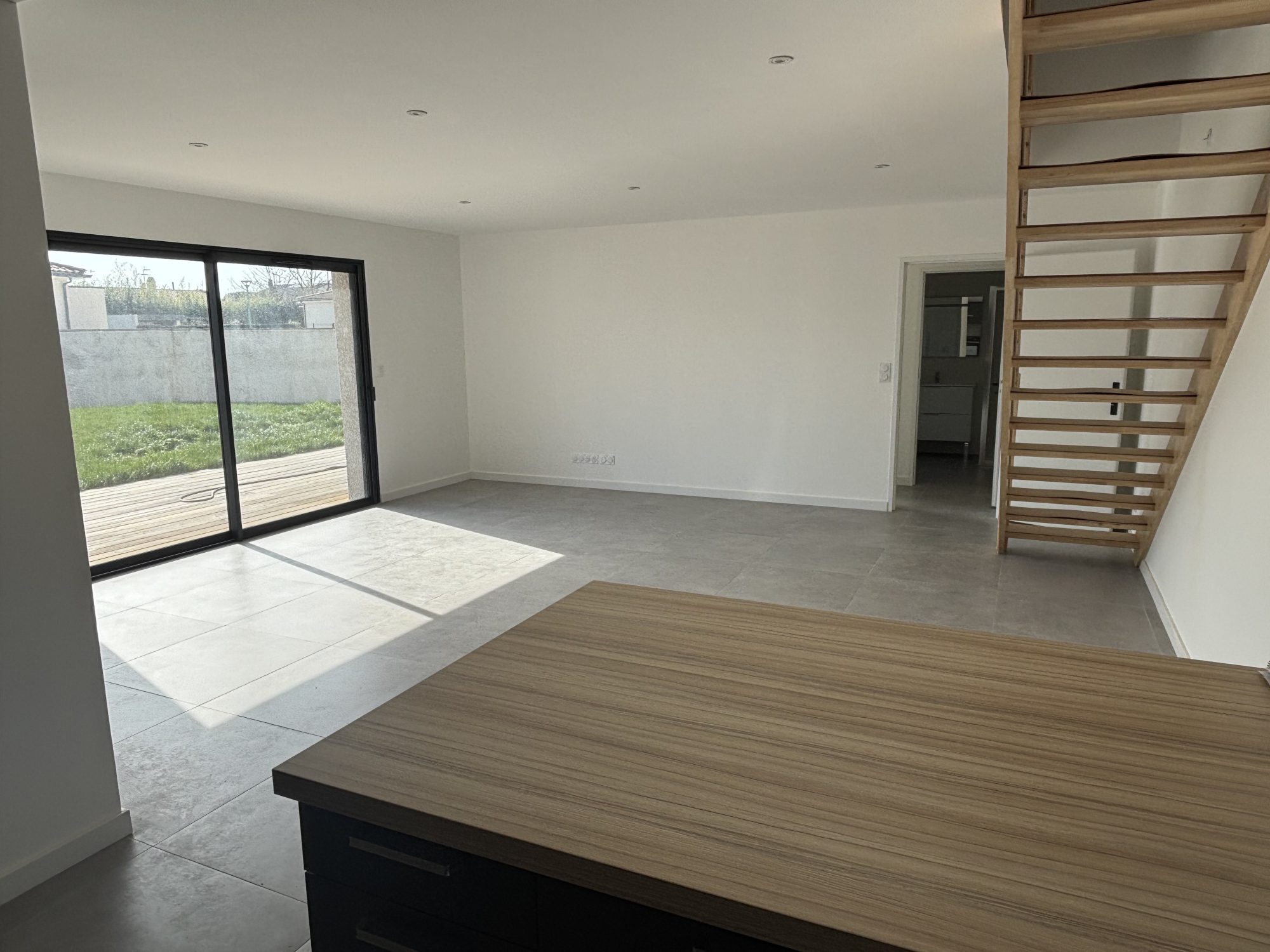 ... ouverte, 1 wc, 1 placard de rangement sous l'escalier, une terrasse et un jardin cloturé.