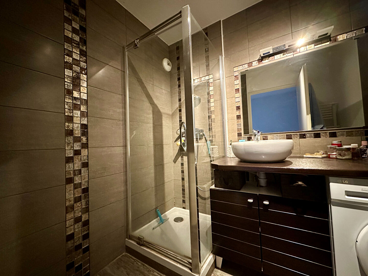 ... salle d'eau récente (3,49 m²) équipée d'une douche, d'un meuble vasque, d'un sè...
