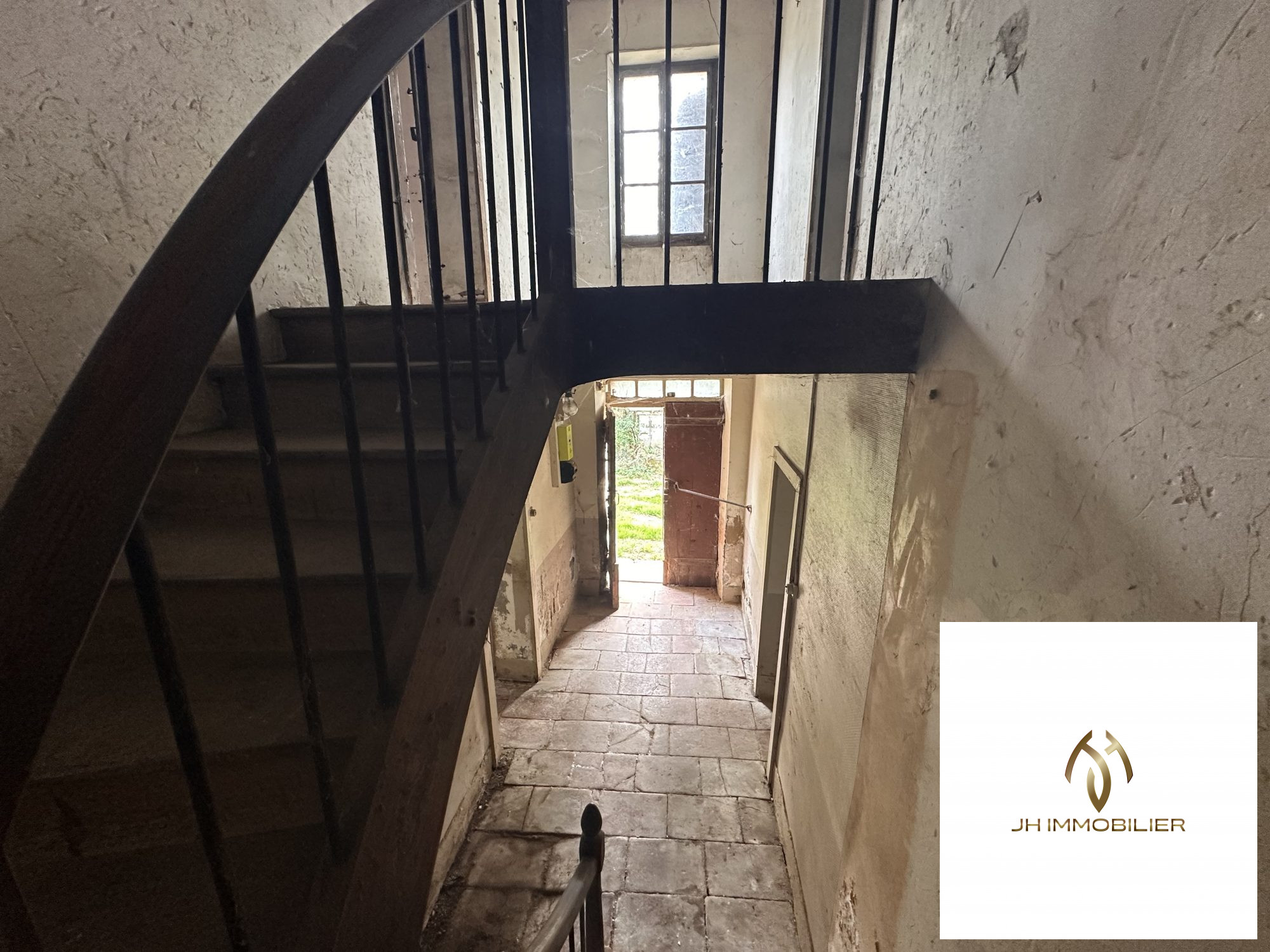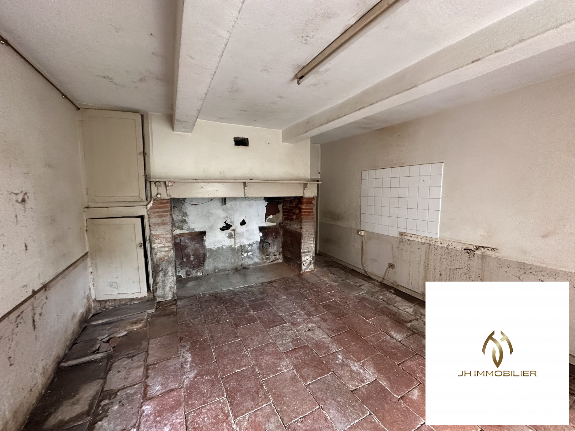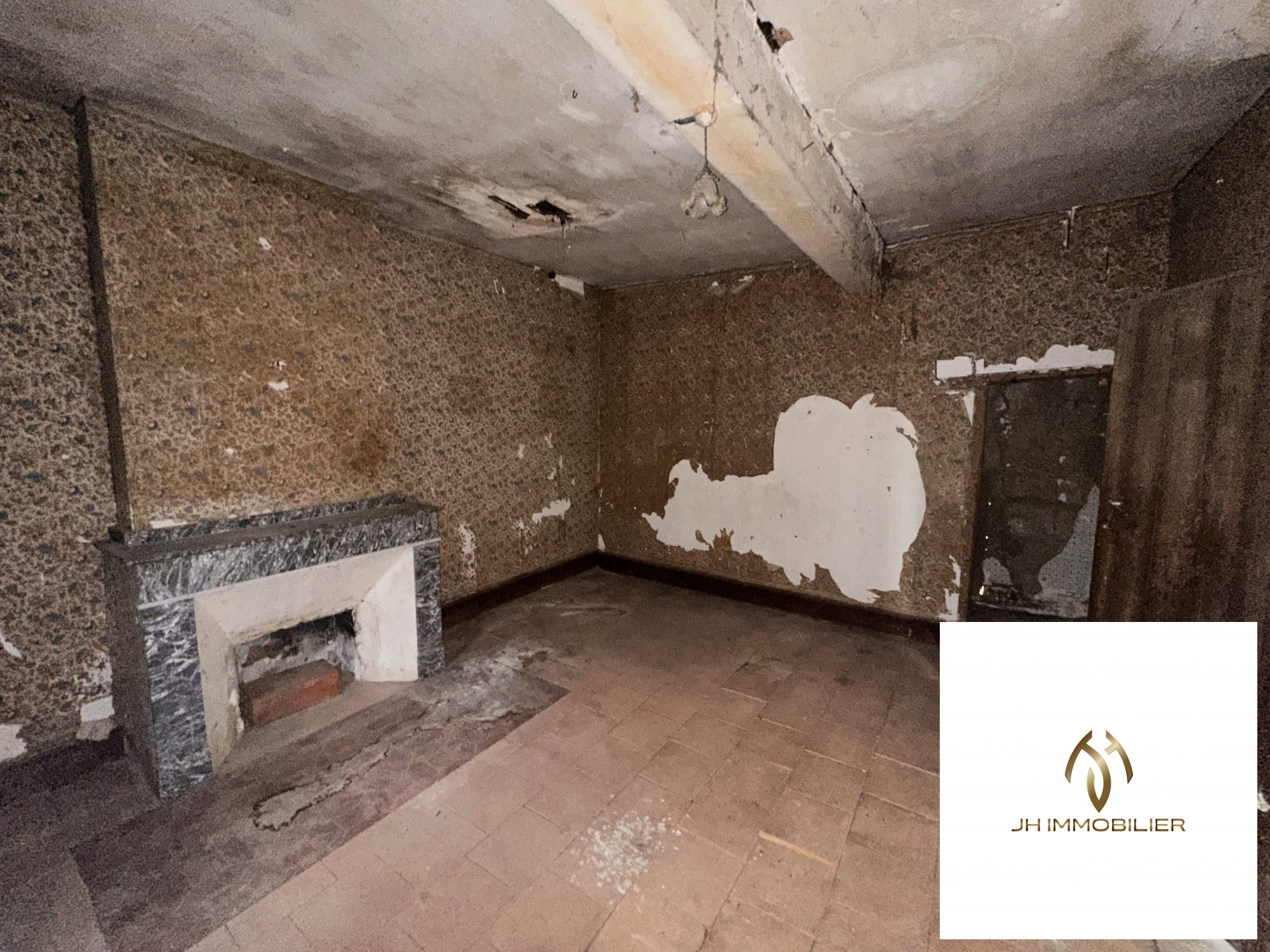 ...Maison en pierre en cours de rénovation comprenant une grande pièce de vie avec insert et une...