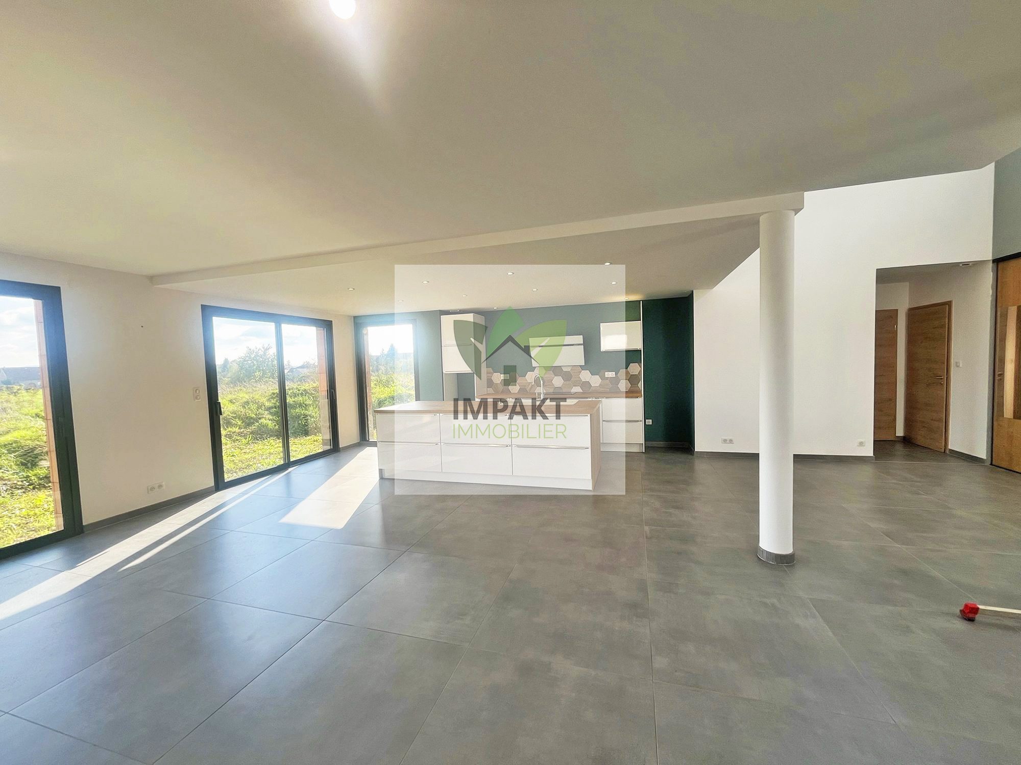 ... », et une cuisine moderne entièrement équipée avec accès à la terrasse. Le couloir vous dirige à la...