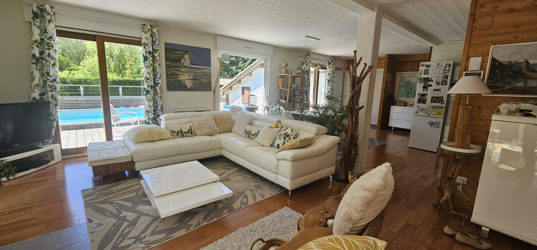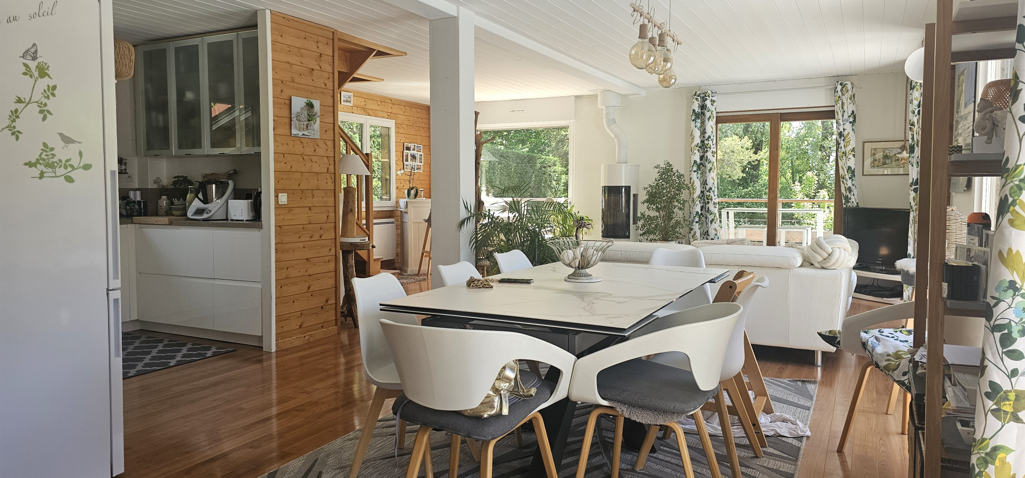 ...Élevée sur deux niveaux, elle propose une belle pièce de vie lumineuse comprenant salon, salle à...