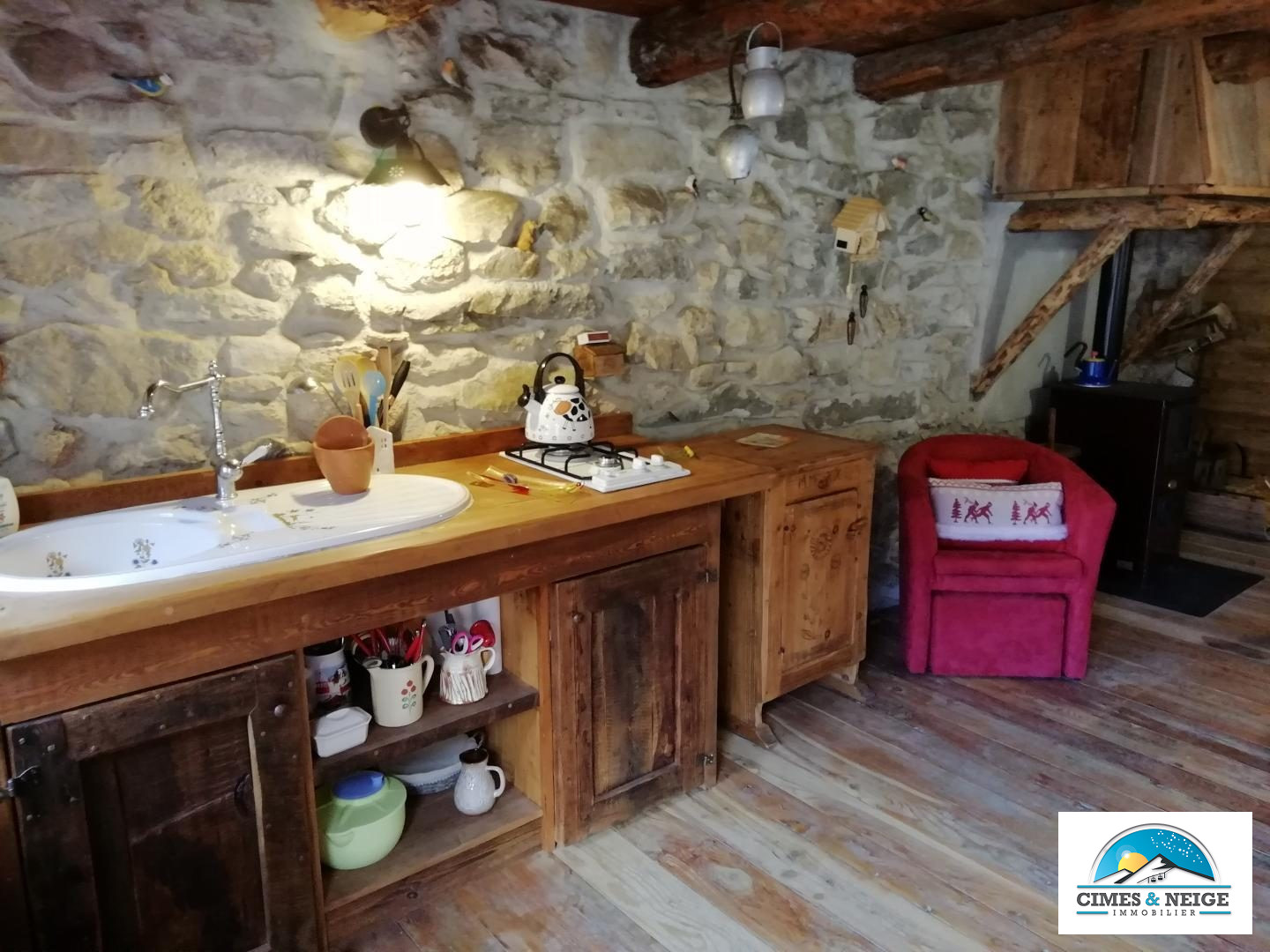 ... américaine moderne entièrement équipée, sa vaste pièce de vie avec poêle à granulés ouverte sur la ...