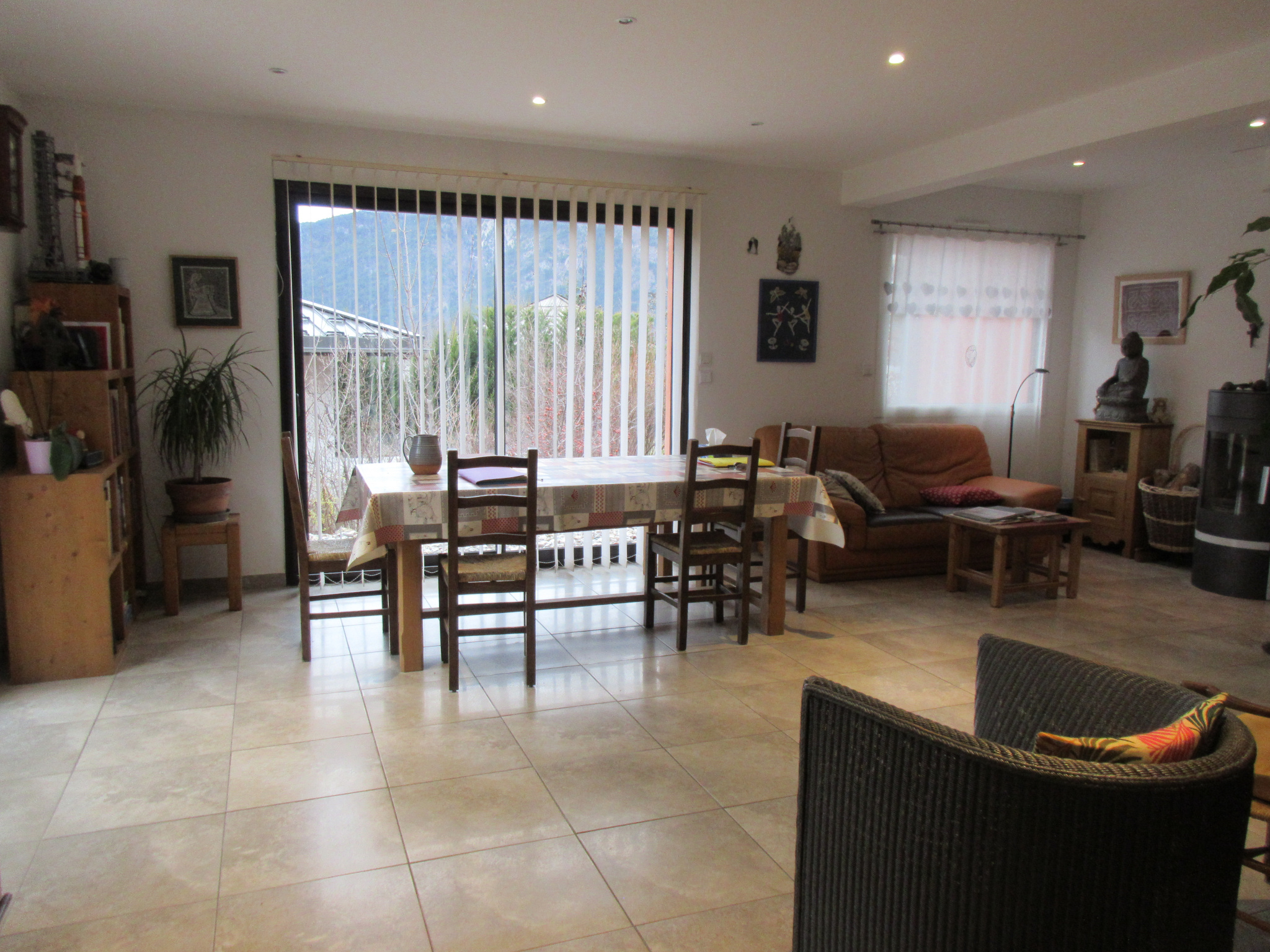 ... plat arboré avec vue montagne, d'une terrasse, d'un abri voiture, d'un garage avec grenier.