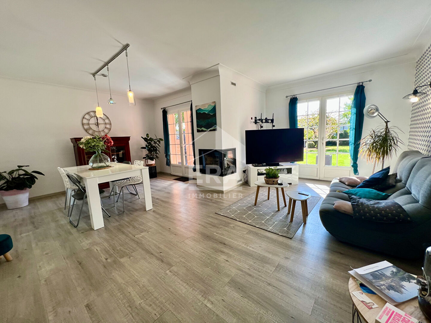 ... avec insert, deux portes fenêtres donnant sur la terrasse couverte, vue sur le parc Cuisine équipé...
