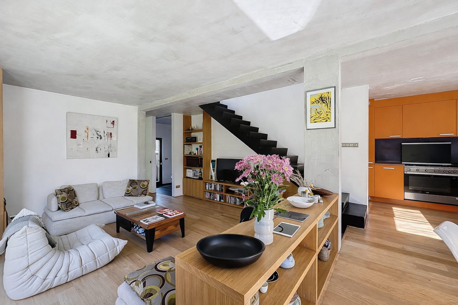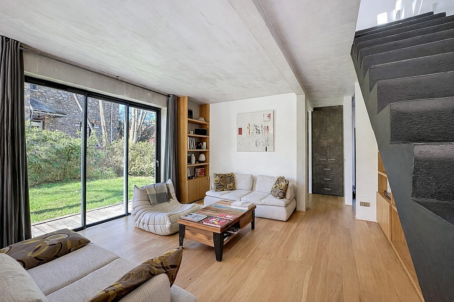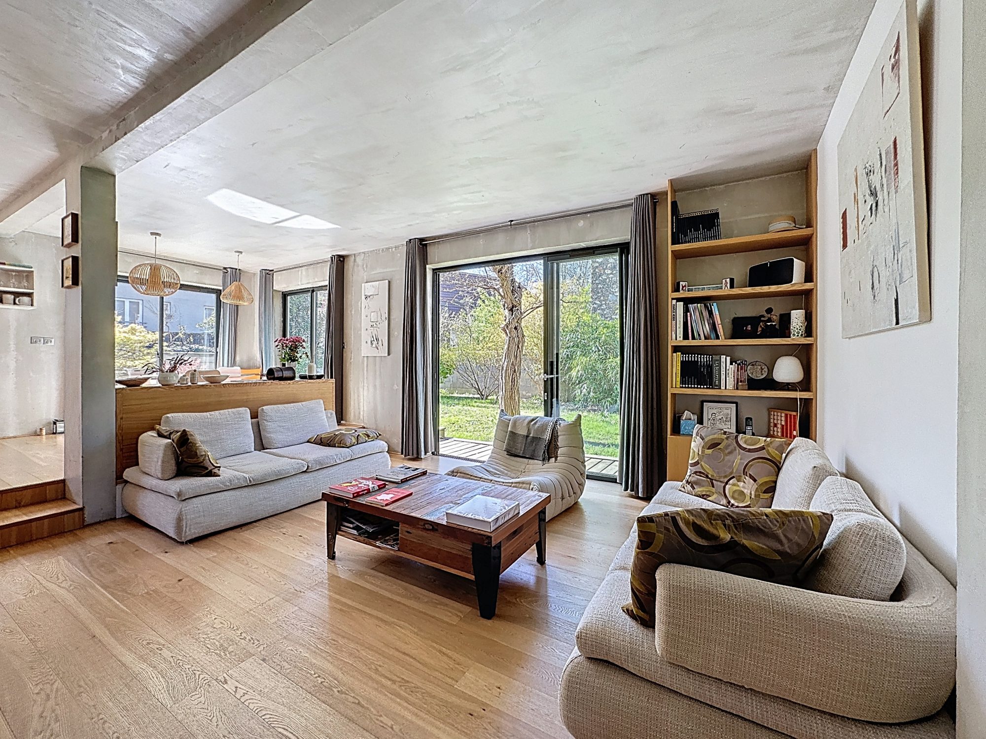 ... vie familiale moderne.L'espace de vie impressionne par ses proportions : un double séjour lumineux ...