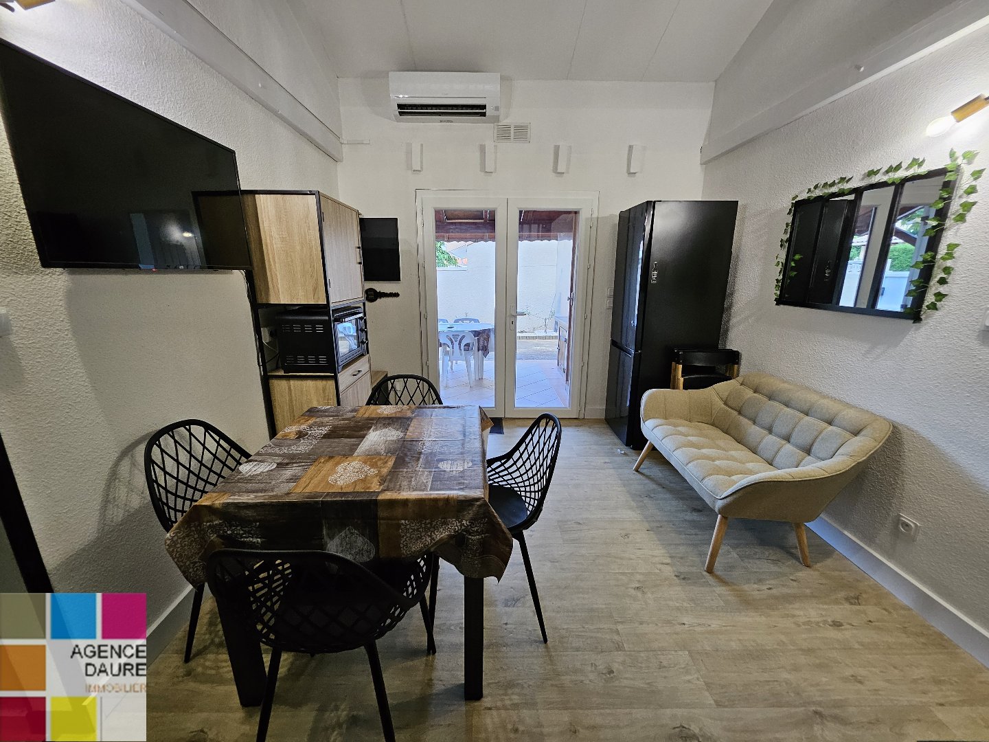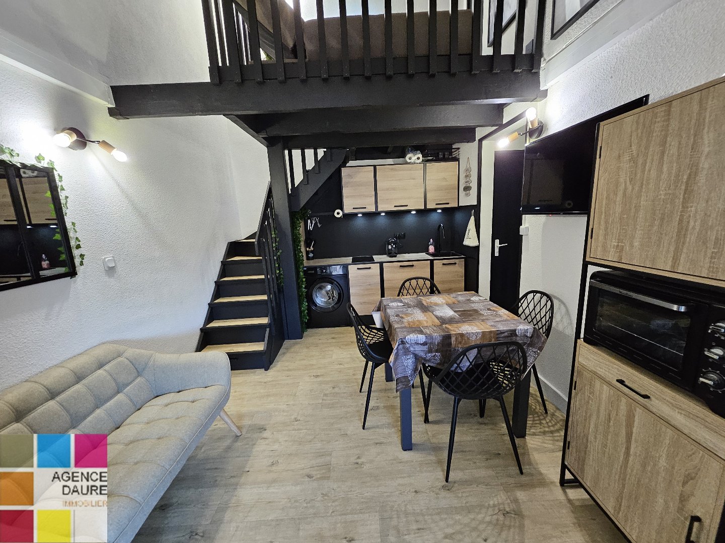 ...Une pièce de vie avec cuisine ouverte, une chambre en rez-de-chaussée avec salle d'eau et WC...