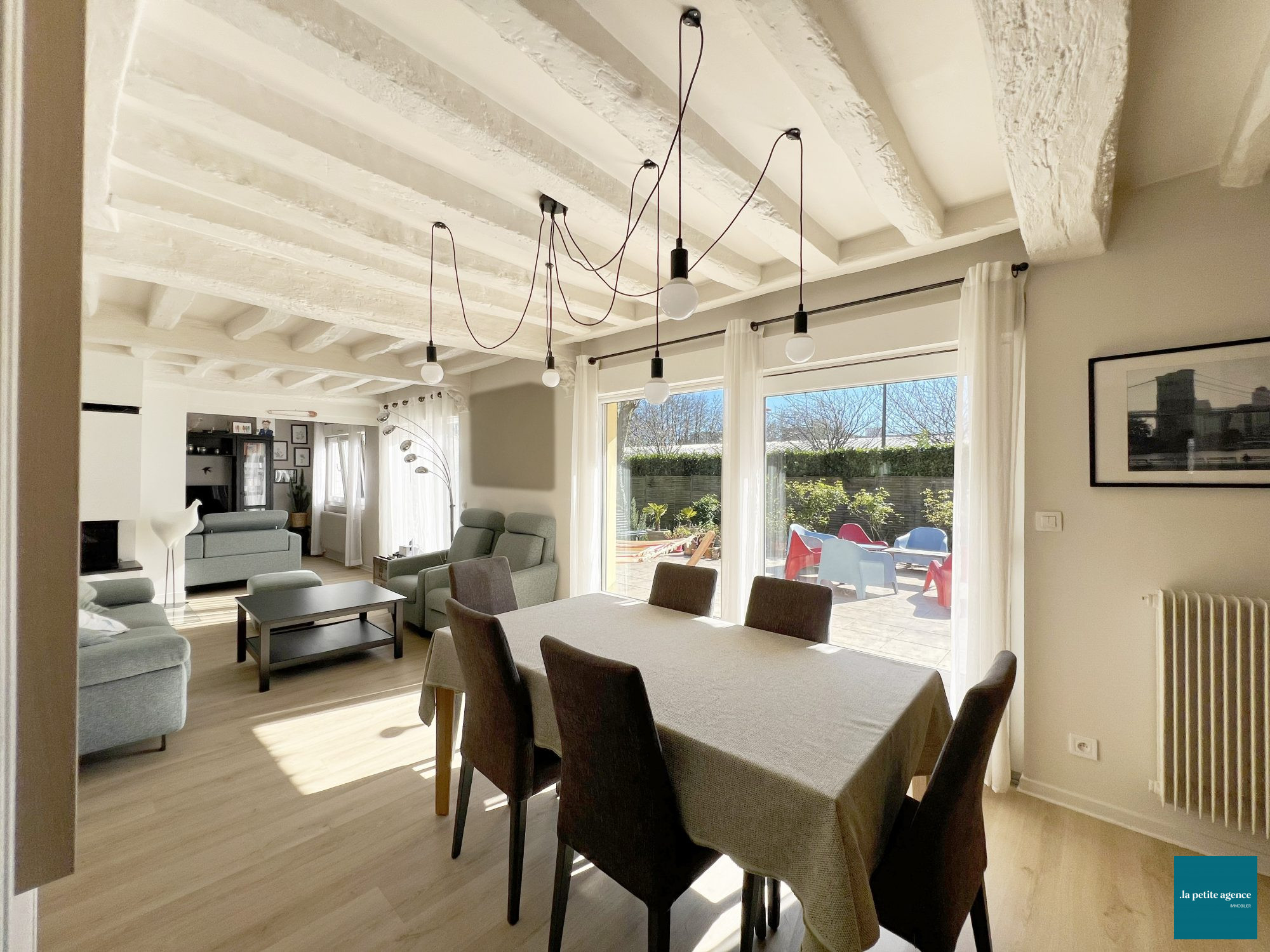...Entièrement rénovée, elle est composée d'un grand espace de vie de + de 50 m2 avec cuisine US...