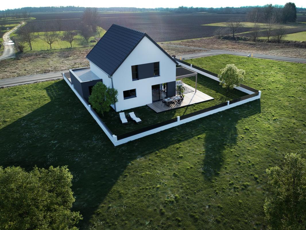 ...Édifiée sur un terrain plat et à aménager de 9 ares, elle peut déployer jusqu'à 240 m² de surface...