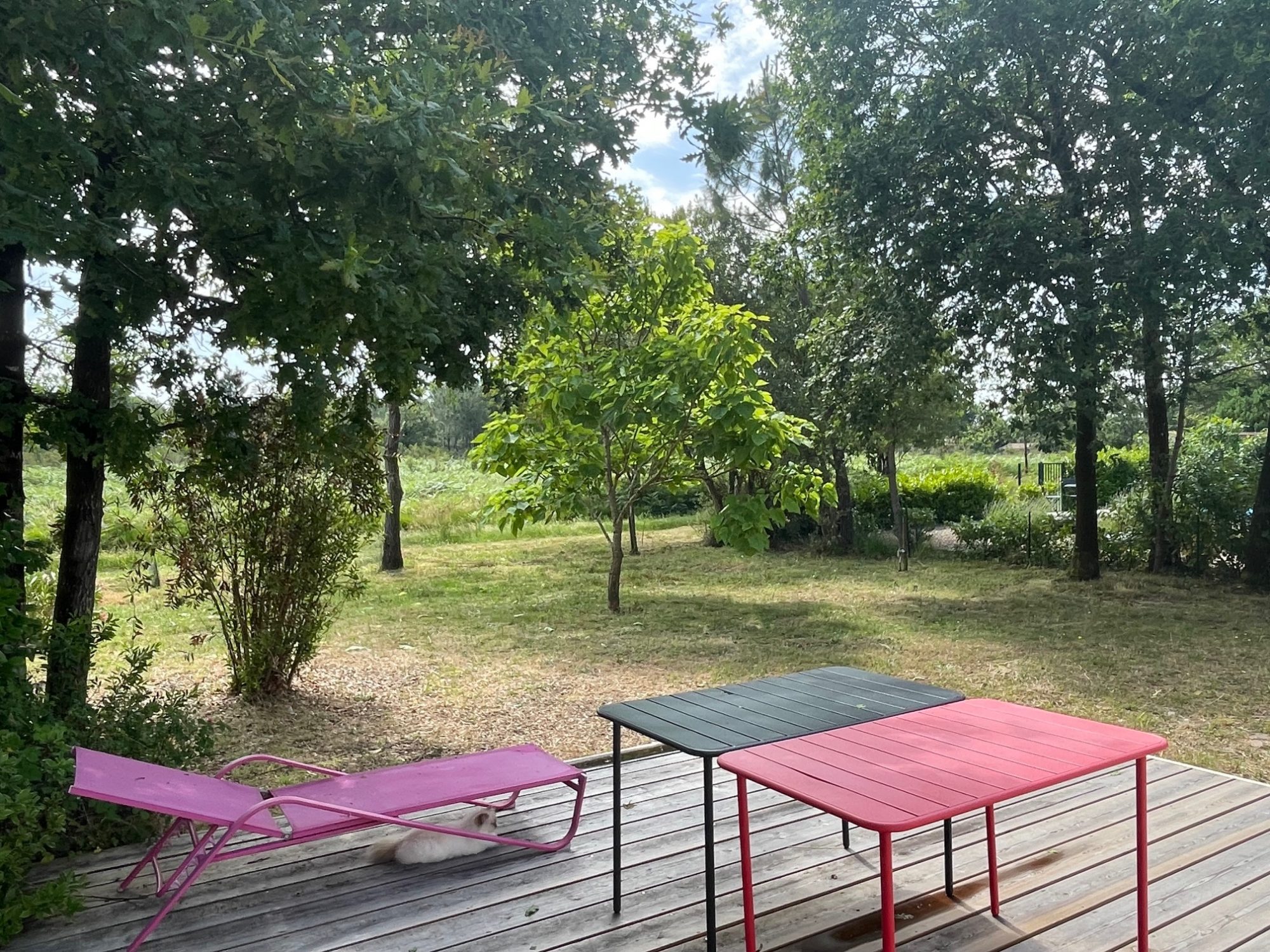 ...Côté extérieur, vous trouverez une belle terrasse en bois, un jardinet et un cabanon...