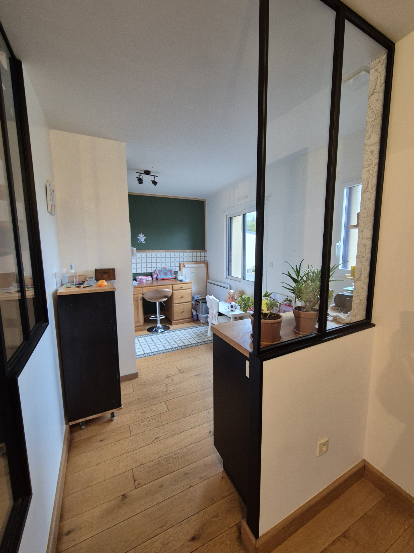 ...A l'étage un dégagement dessert 2 chambres avec placards, une salle de bains et un wc suspendu...