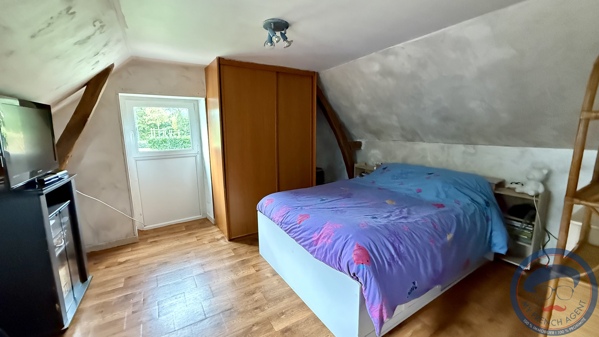 ...A l'étage une magnifique chambre mansardée est accompagnée d'une grande salle de bain avec...