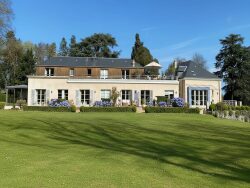 ...Avec ses 15 pièces, dont 8 chambres spacieuses et 8 salles de bains, ce château offre un espace...