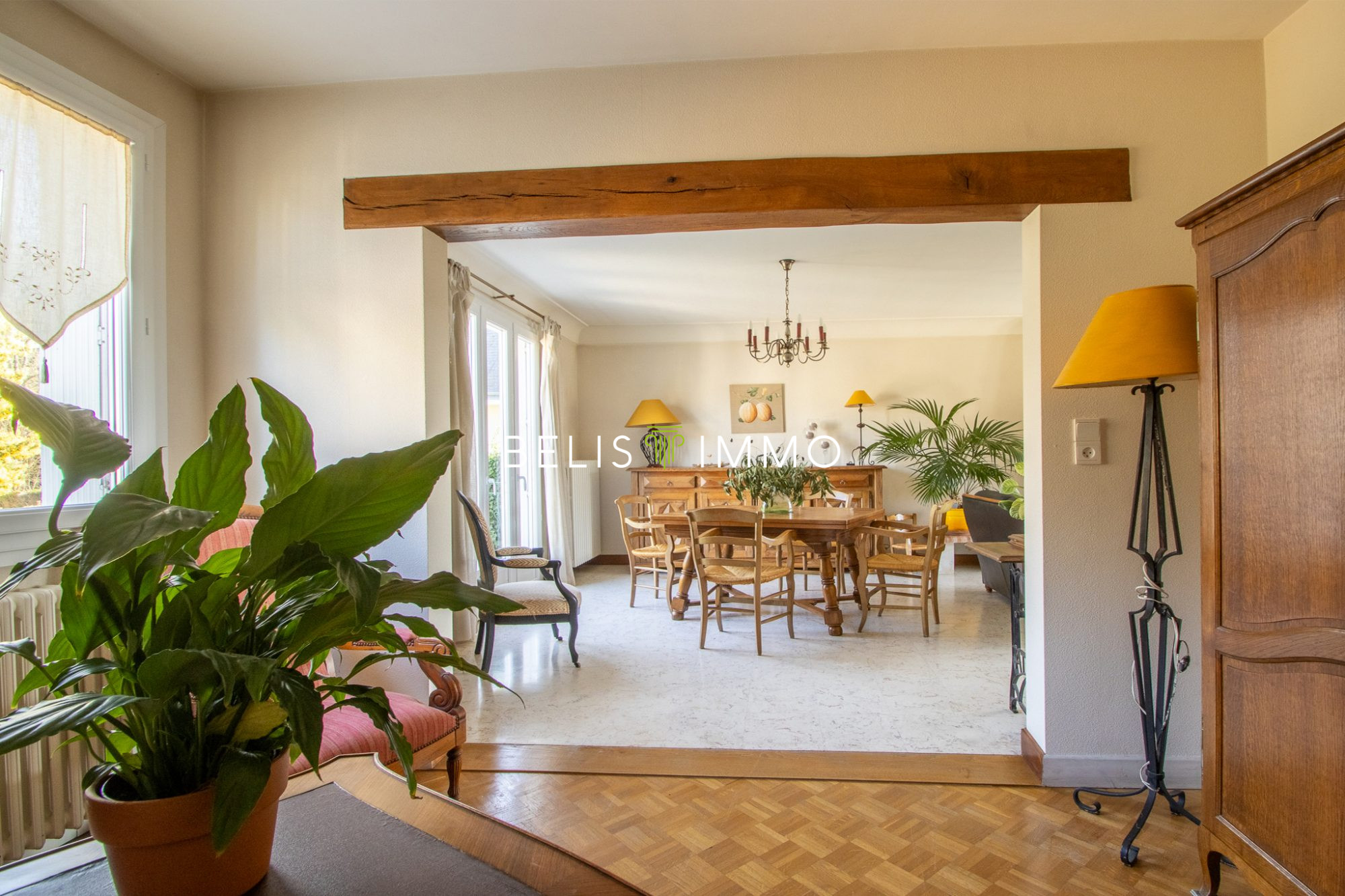...Implanté sur un terrain clos, arboré et fleuri de 1 604 m², ce bien rare offre un cadre paisible...