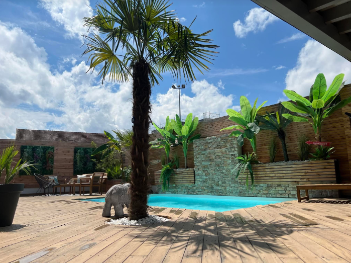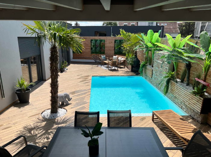 ...Composée d'un salon séjour lumineux donnant accès à une grande terrasse avec piscine extérieure...