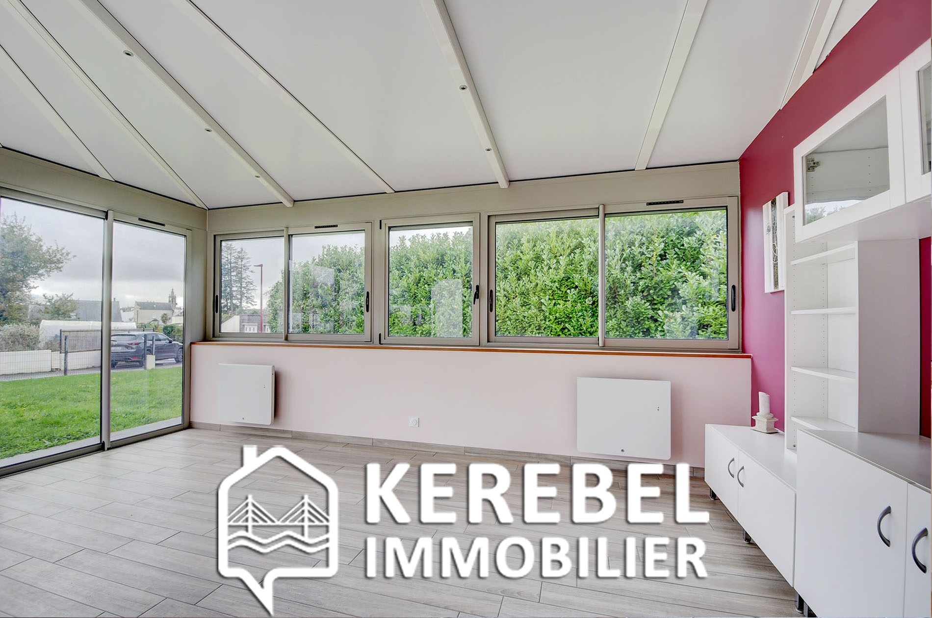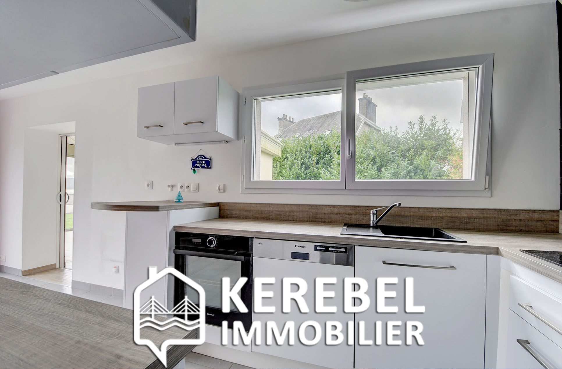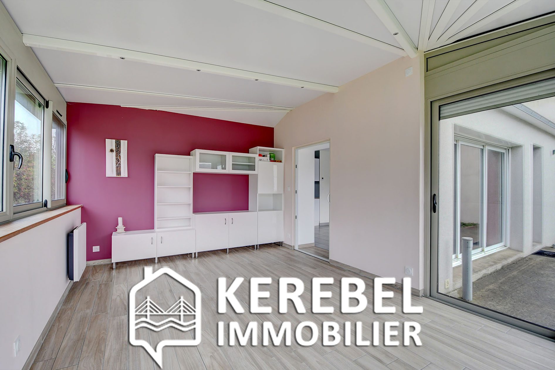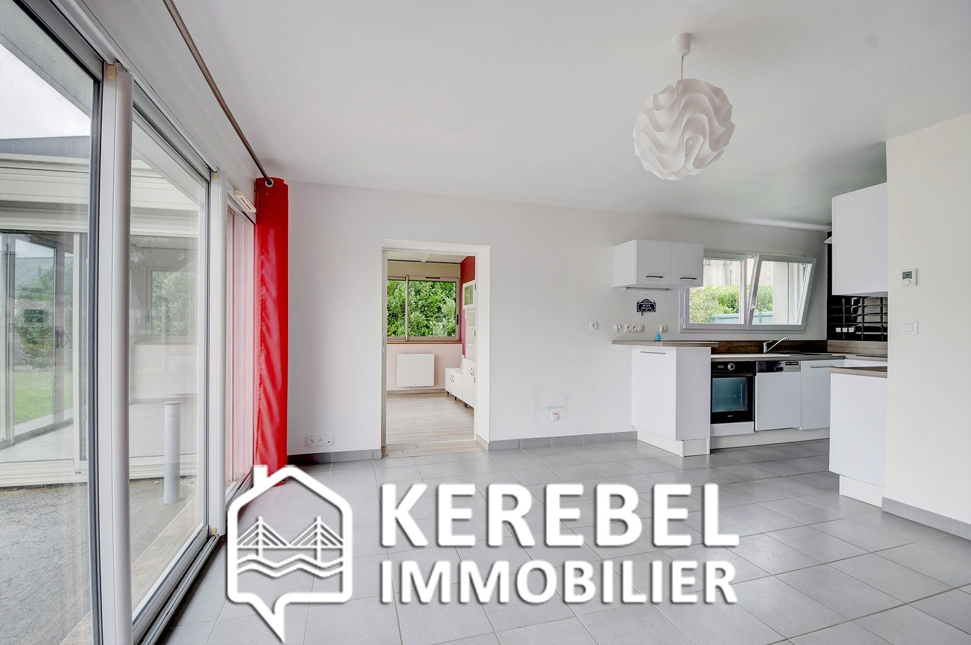 ...Pièce de vie lumineuse de 25 m² avec cuisine ouverte et accès vers la véranda récente de 18 m²...