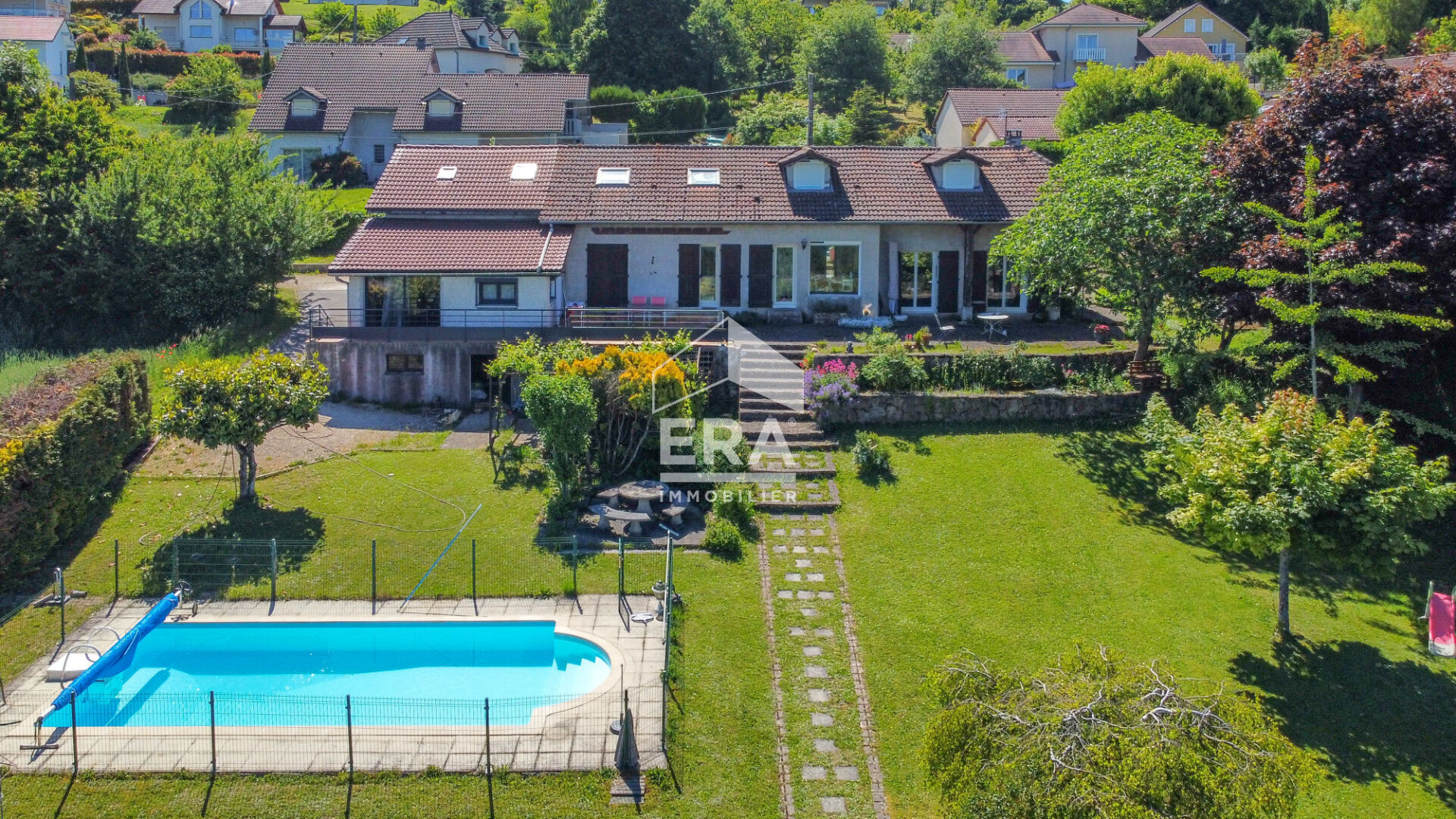 ...Édifiée sur une superbe parcelle arborée de 1 502 m², cette propriété de 200 m² habitables...