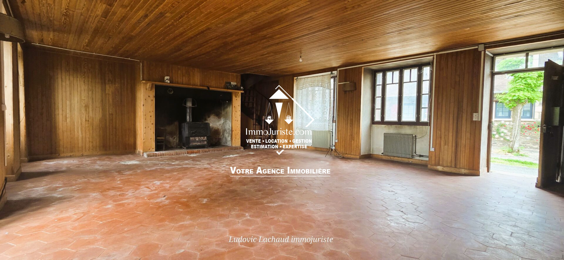...Elle est composé au rez-de-chaussée d'une double pièce de vie avec une cheminée, une cuisine...