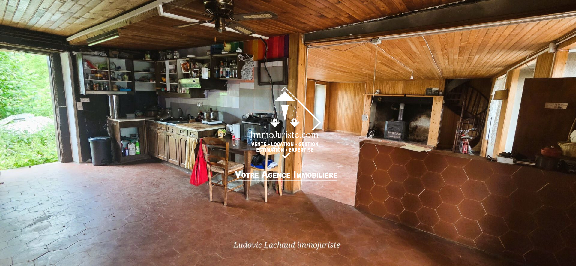 ...Elle comprend: une entrée, un hall d'escalier, une cuisine avec cantou ainsi qu'une pièce à vivre...