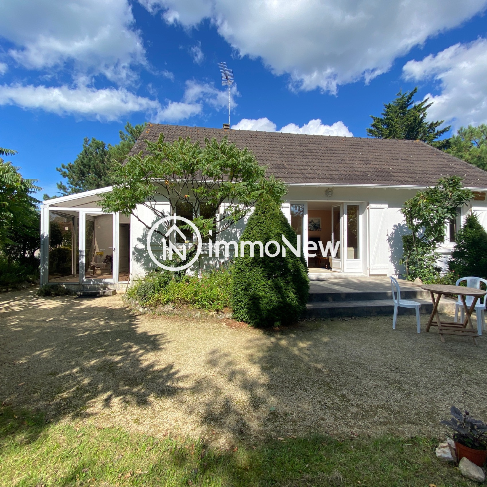 ...La pièce de vie est baignée de lumière avec ses grandes baies vitrées donnant sur la terrasse à...