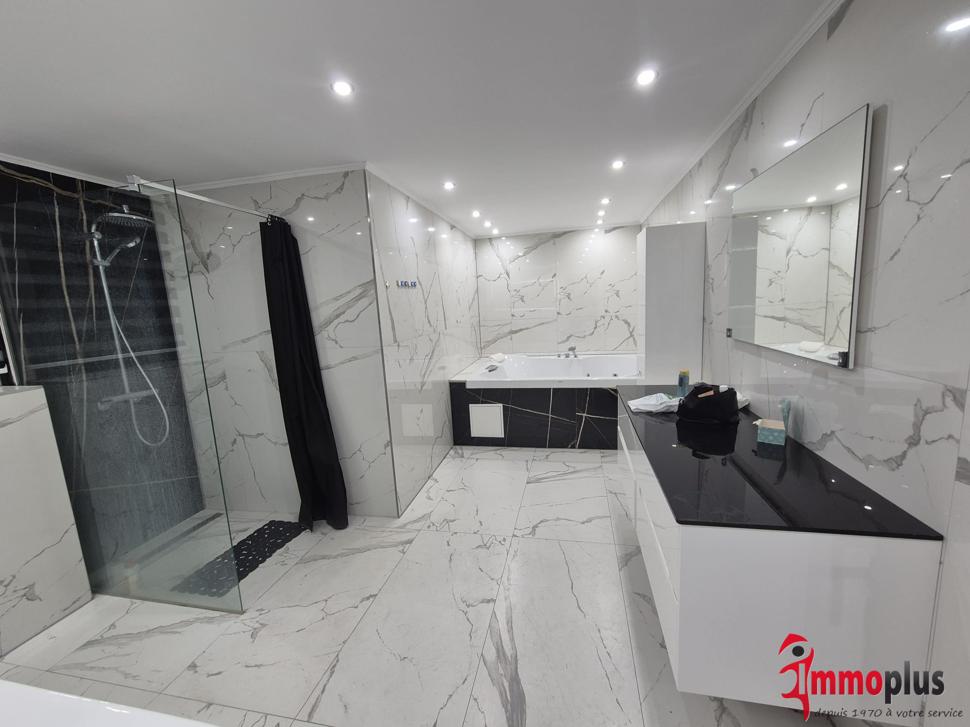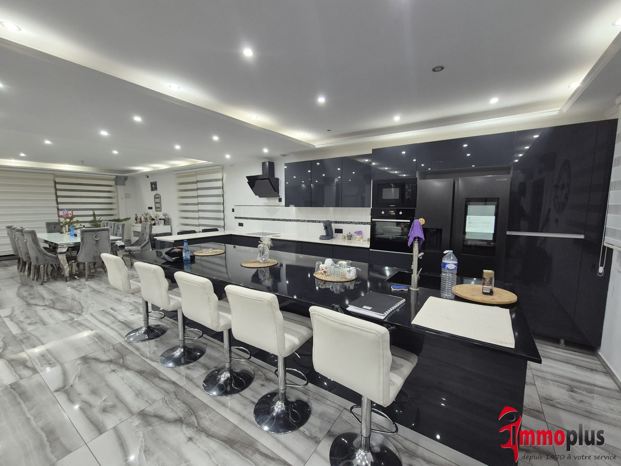 ...Au rez-de-chaussée, un vaste espace de vie ouvert accueille salon, salle à manger et cuisine dans...