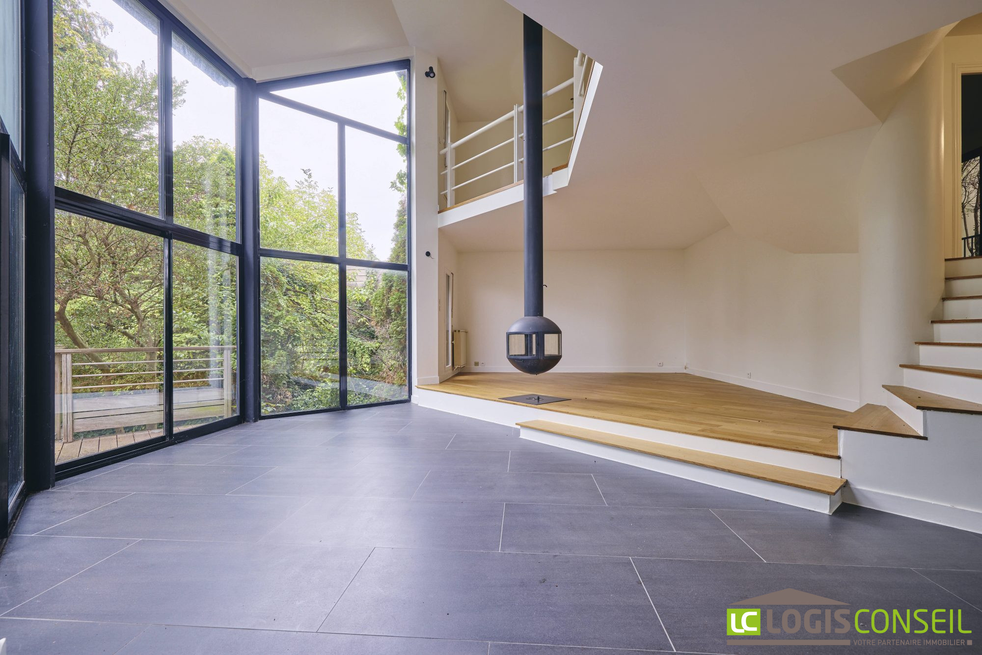 ...Au rez-de-chaussée : une entrée avec nombreux placards, un beau séjour type cathédrale, une...
