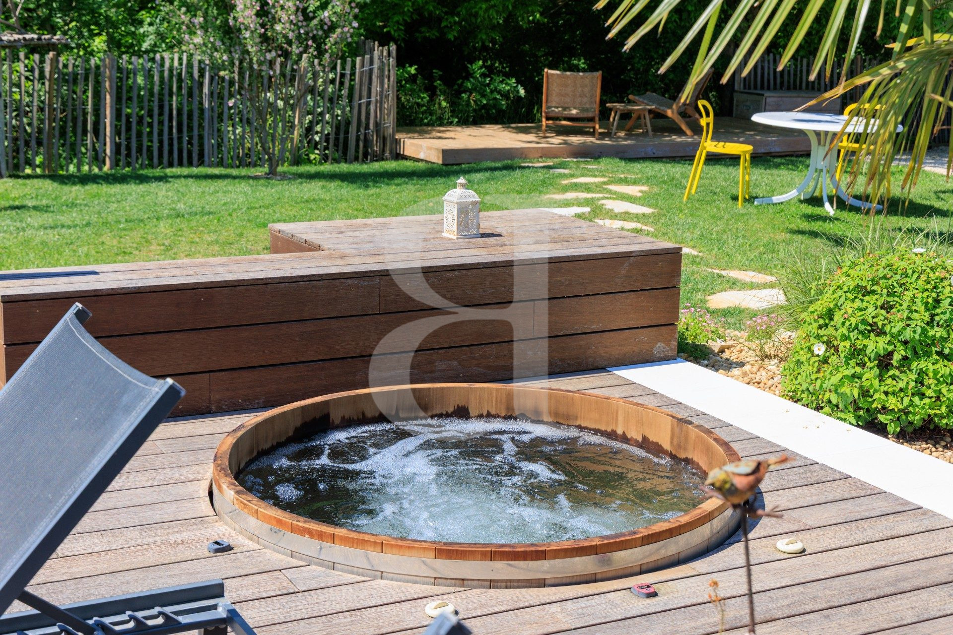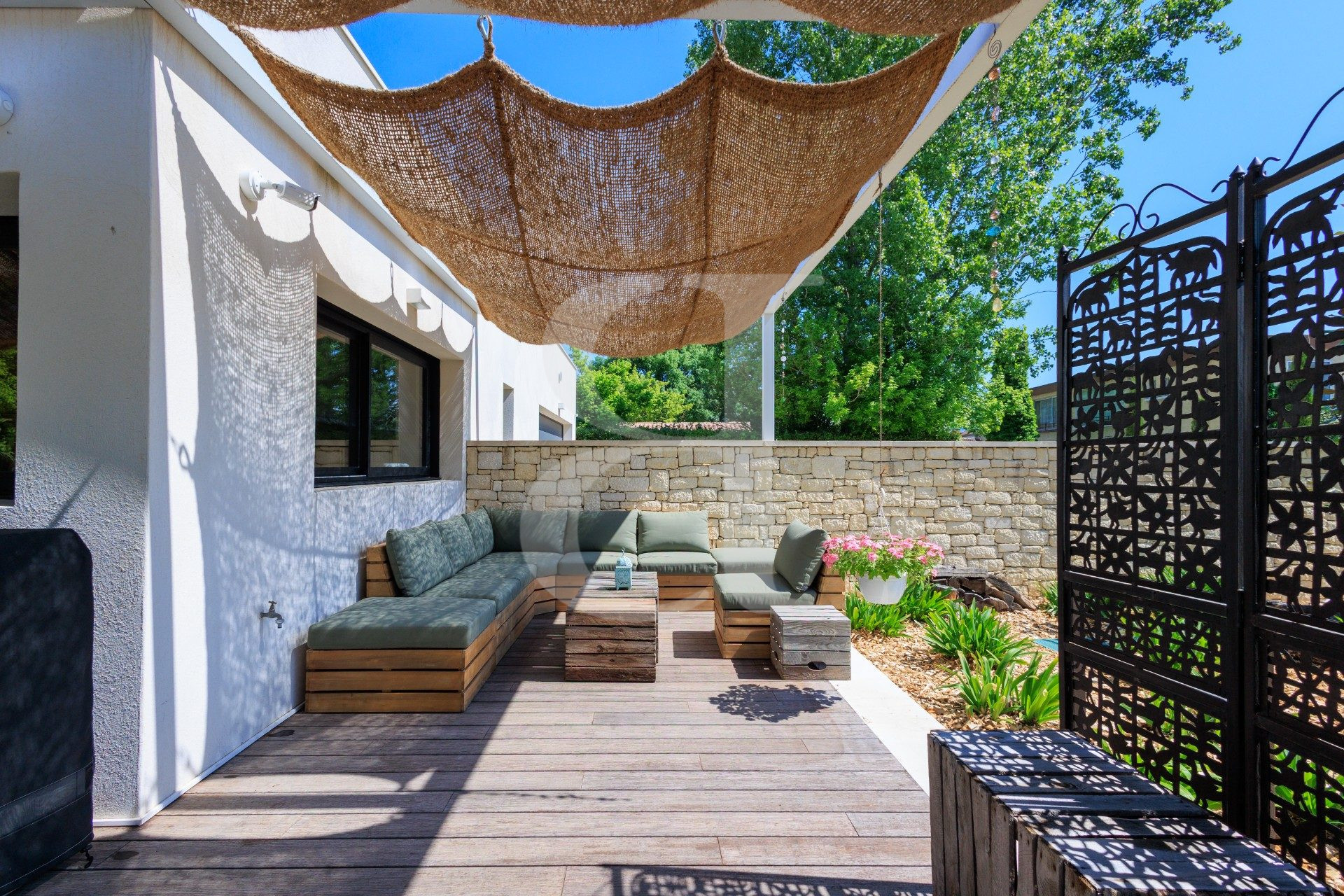 ...Implantée sur un terrain arboré de 1377 m² en bordure directe de la Sorgue, cette propriété...