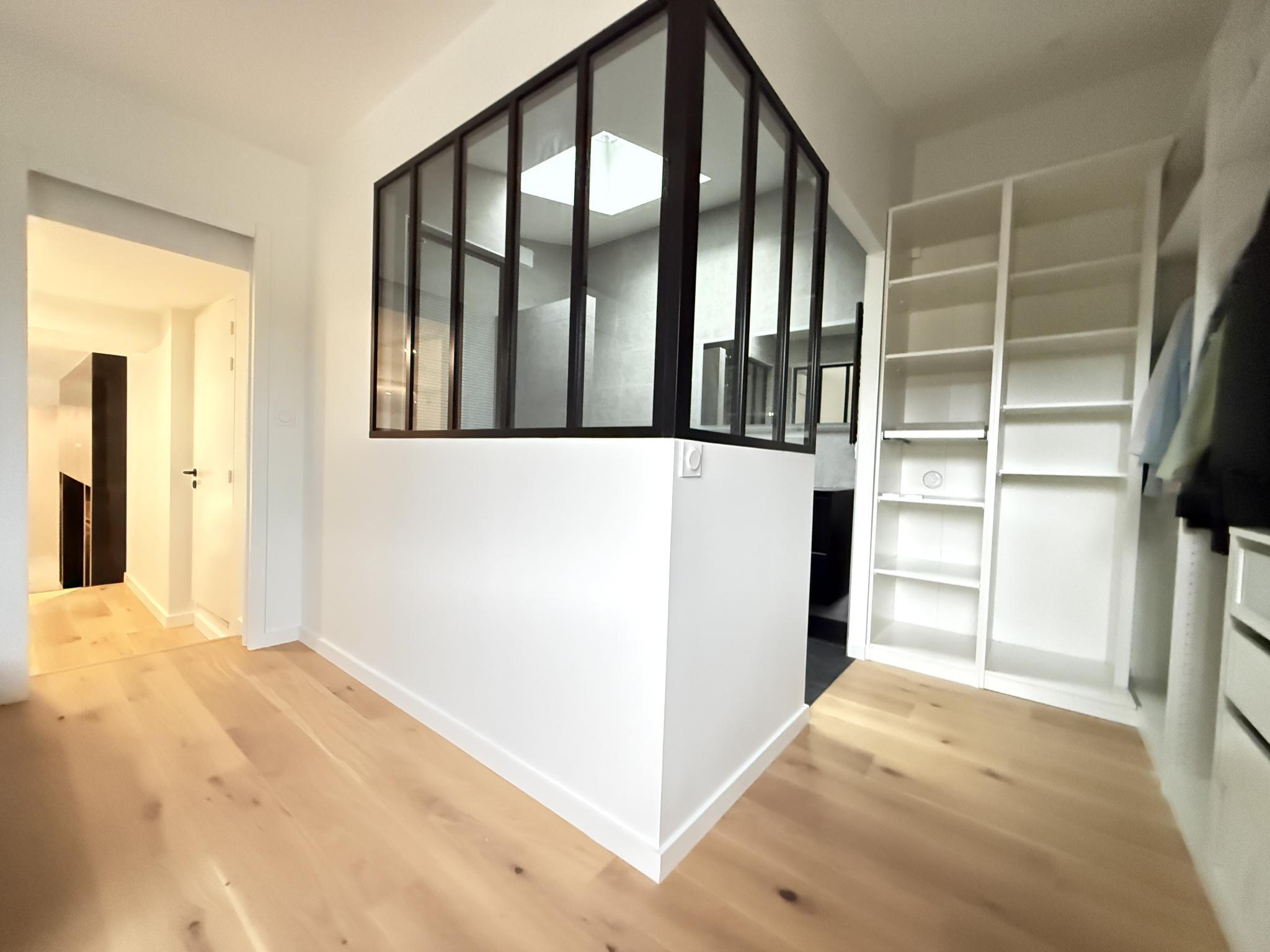 ... avec chambre, dressing et salle de bains équipée d'une douche.