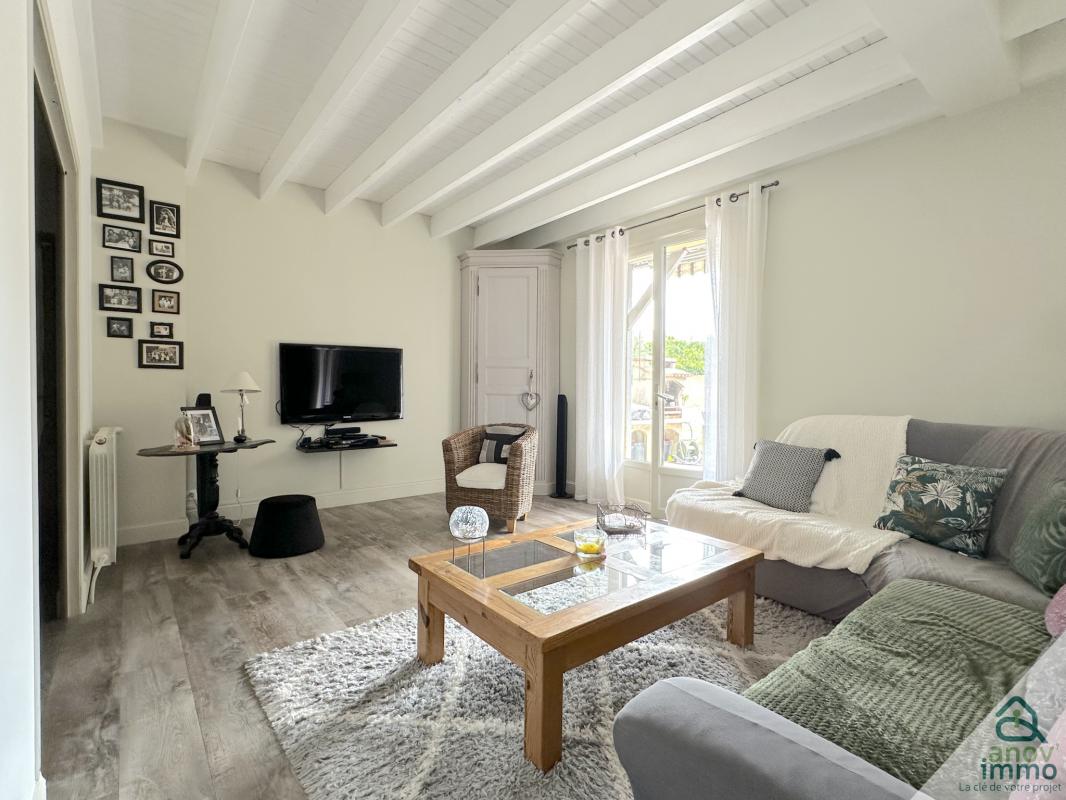 ... : Entrée avec placard, séjour d'environ 51 m² avec cuisine ouverte et équipée, deux chambres dont u...