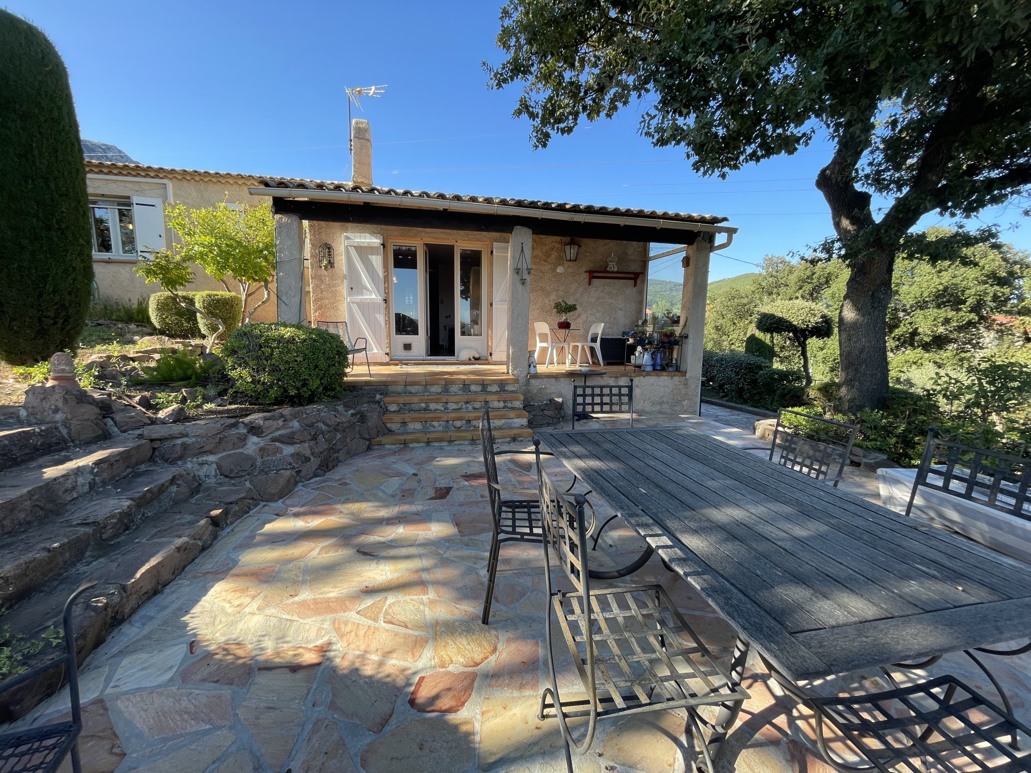 ...Edifiée sur un terrain de 1550 m 2 cette maison de 1984 n'est mitoyenne que par le garage...