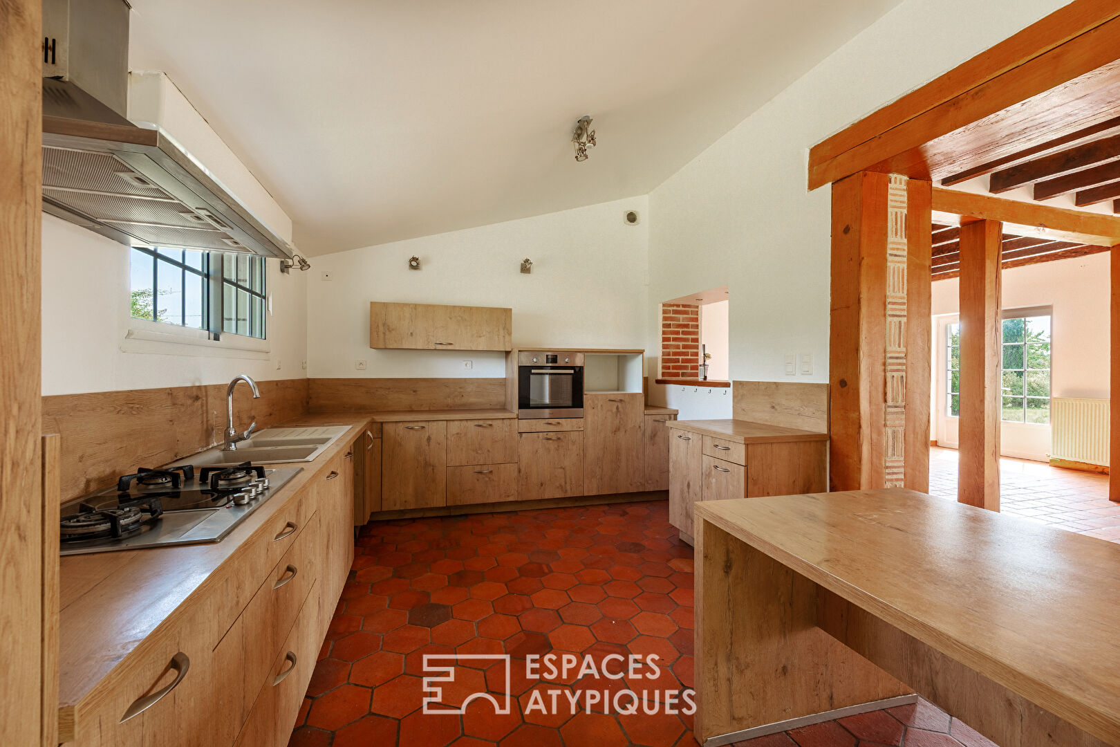 ...Sols en terre cuite, plafonds à poutres apparentes, cadre de vie paisible et potentiel unique en...
