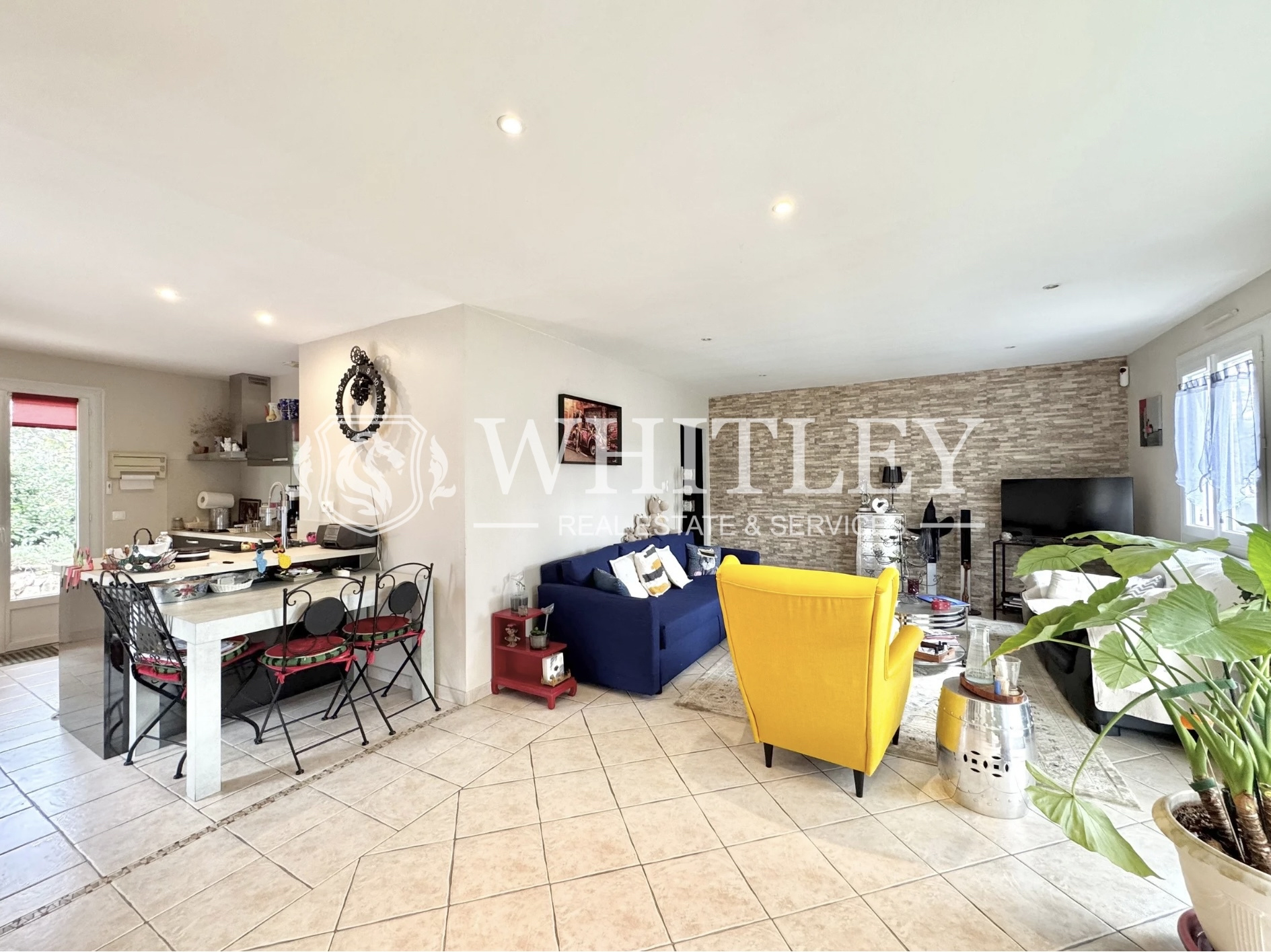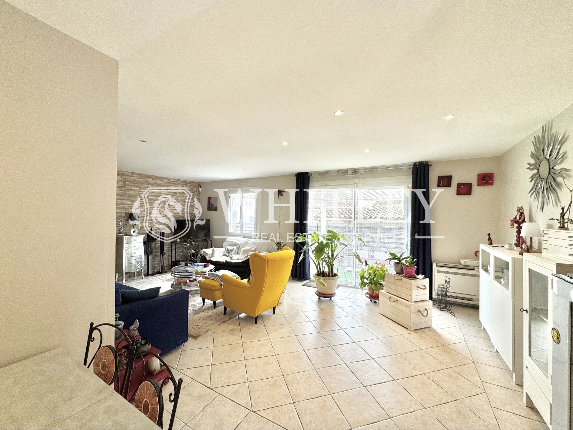 ...Cette maison se compose :D'une entrée avec placard, d'un vaste séjour lumineux de 54 m² avec...