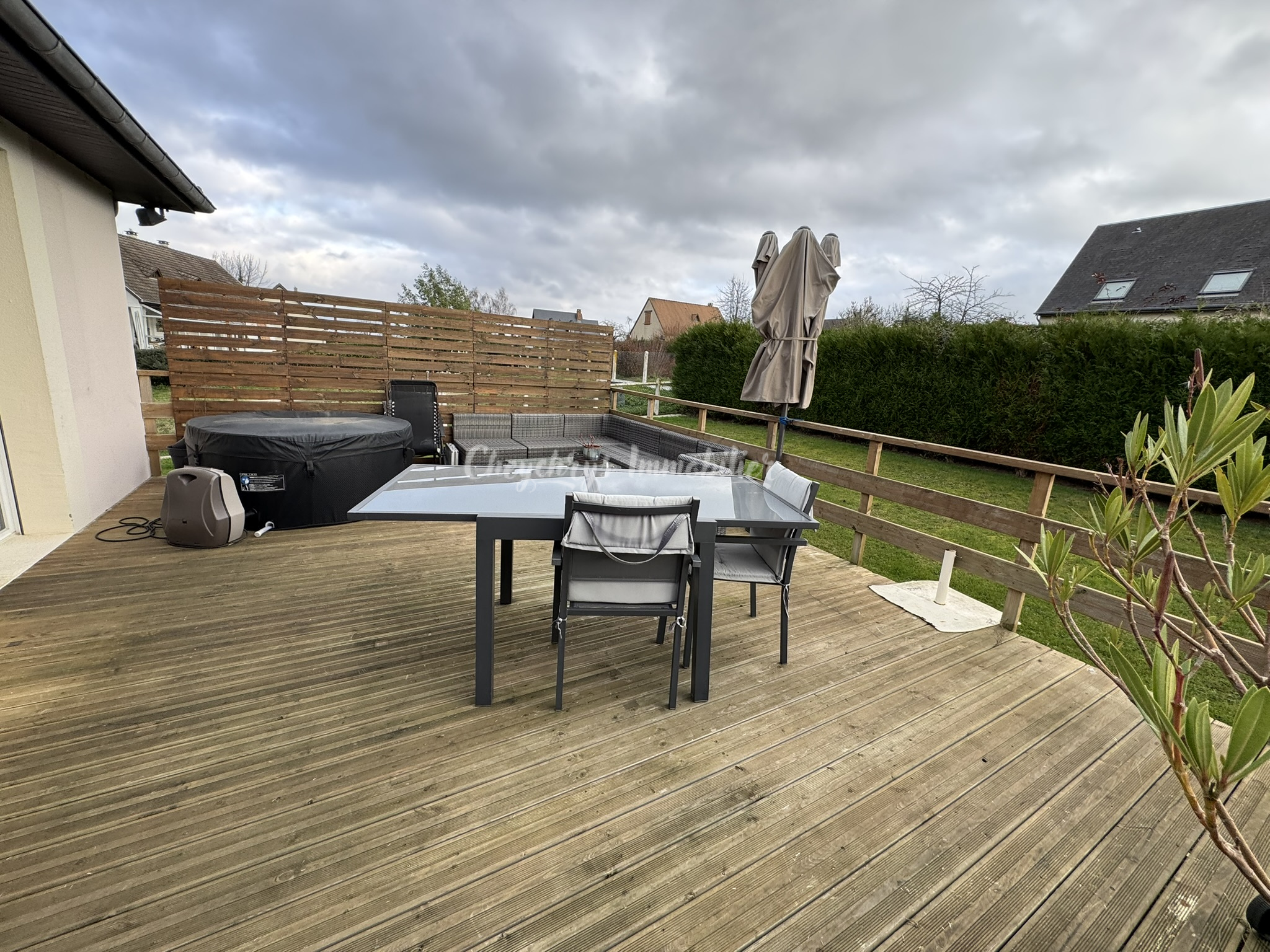 ...Elle est composée d'un beau séjour, d'une cuisine indépendante aménagée et équipée et son cellier...