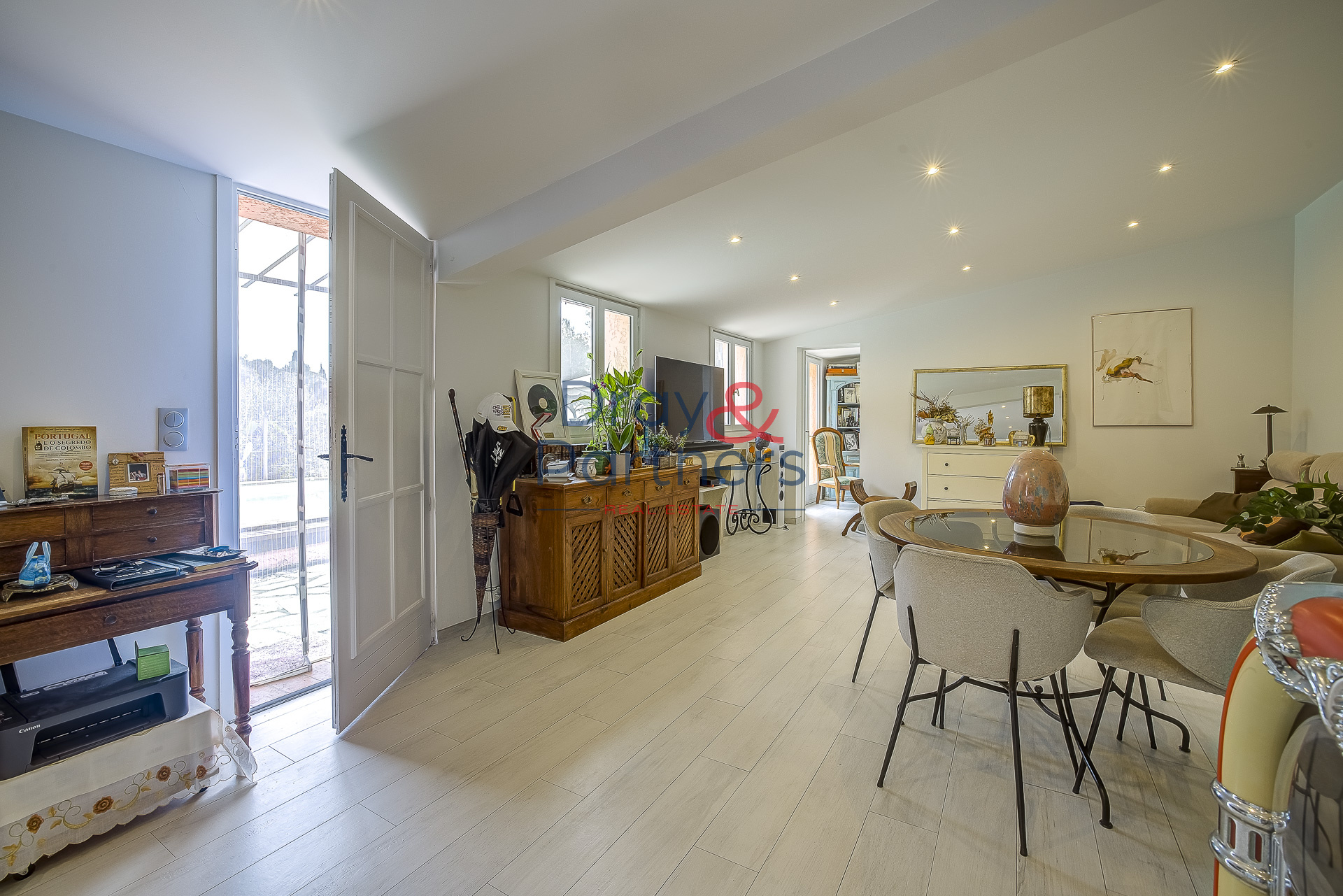 ...Jardin de 900m² La villa se compose d'une superbe pièce à vivre avec cuisine américaine, espace...