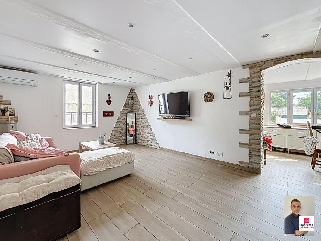...A l'intérieur : une entrée, un séjour agréable avec cheminée insert GODIN, ouvrant sur le...