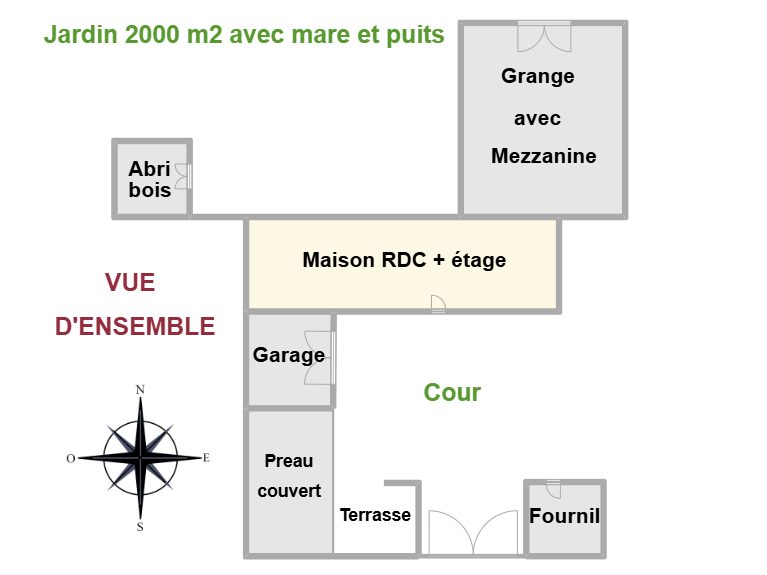 ...L'accès à la propriété se fait par un portail dans une cour privée qui dessert la maison, un...