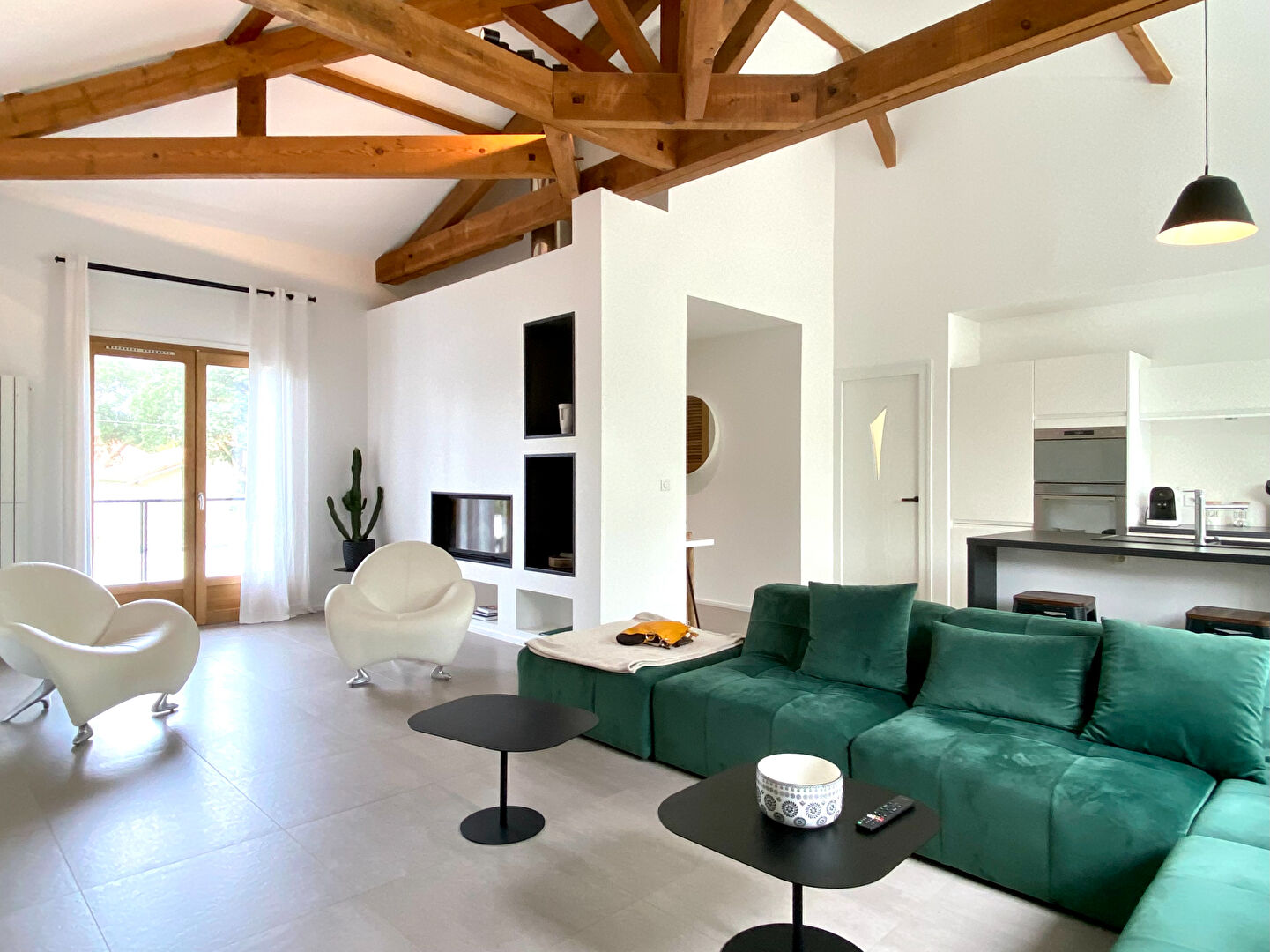 ...Le vrai coup de coeur se joue sur les volumes et la lumière : une pièce de vie avec cuisine...