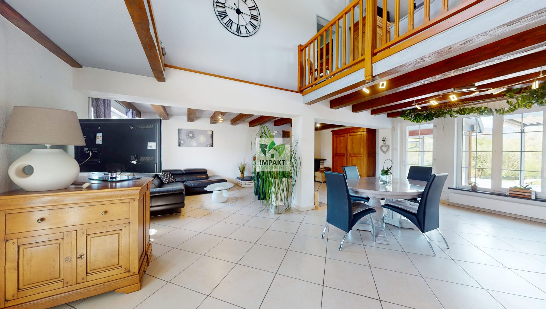 ...La maison s'ouvre sur une lumineuse pièce de vie de près de 55m² avec insert bois, donnant sur...