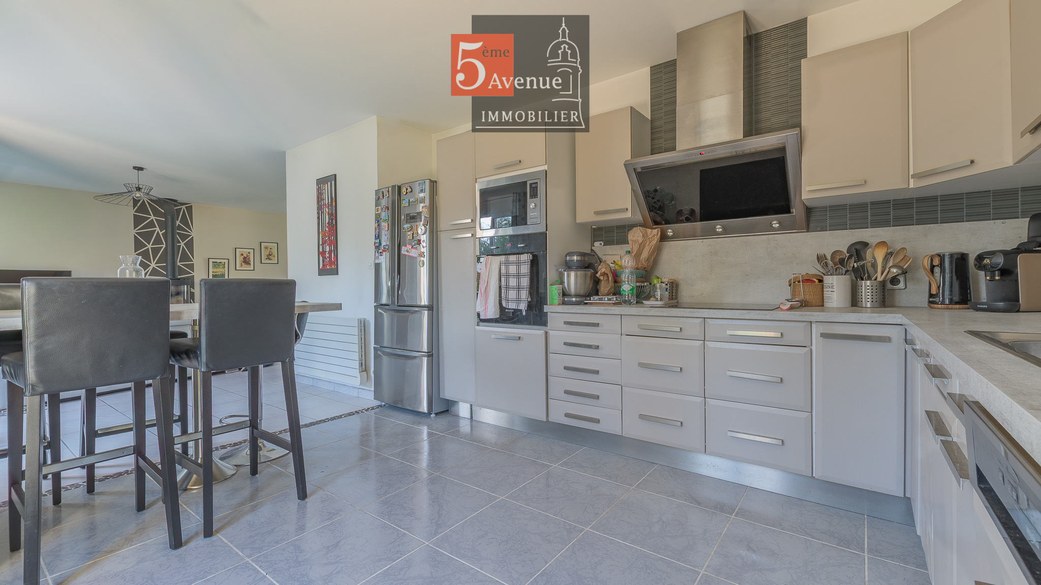 ...L'entrée ouvre sur un spacieux espace de vie comprenant une grande cuisine dinatoire, un salon...
