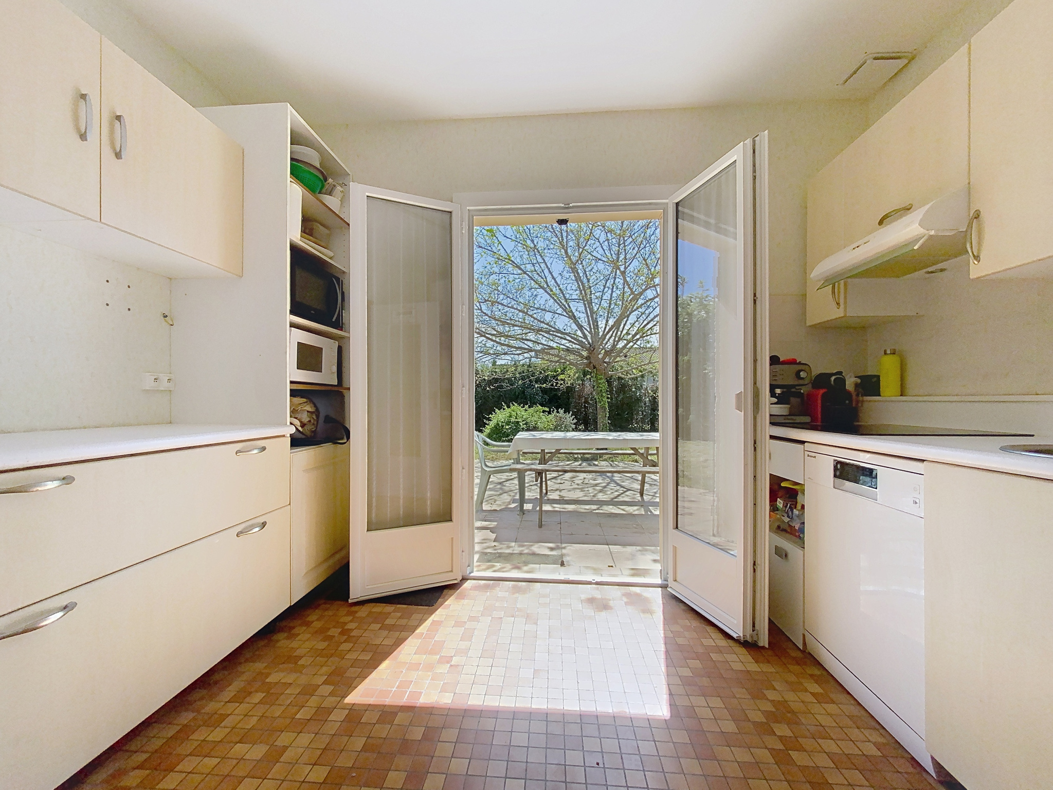 ...Au rez-de-chaussée, la maison se compose d'une cuisine aménagée et équipée ouverte sur le séjour,...