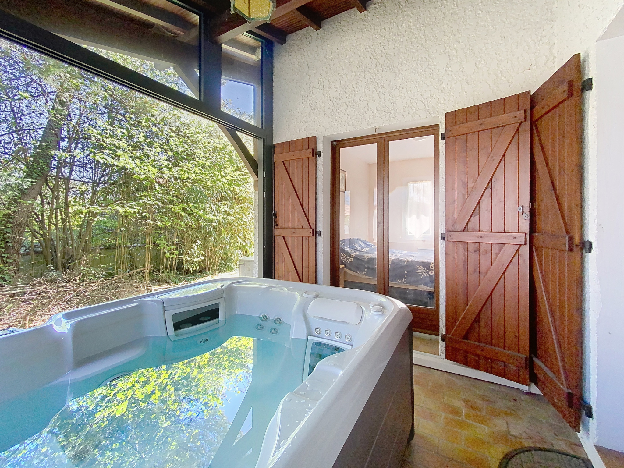 ...La demeure principale propose un vaste salon-séjour avec véranda attenante, un cellier, quatre...