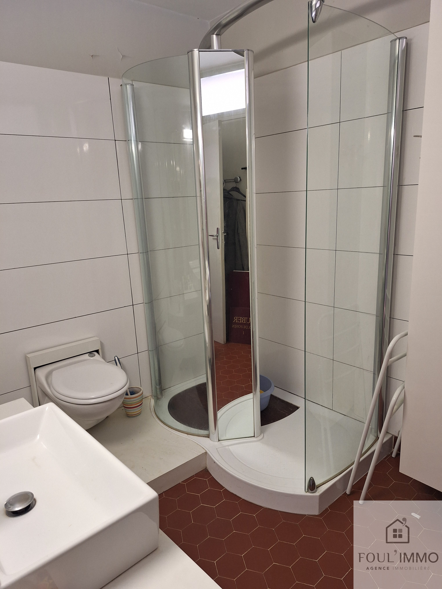 ...Après une entrée fonctionnelle avec un placard de rangement et un wc indépendant, s'ouvre une...