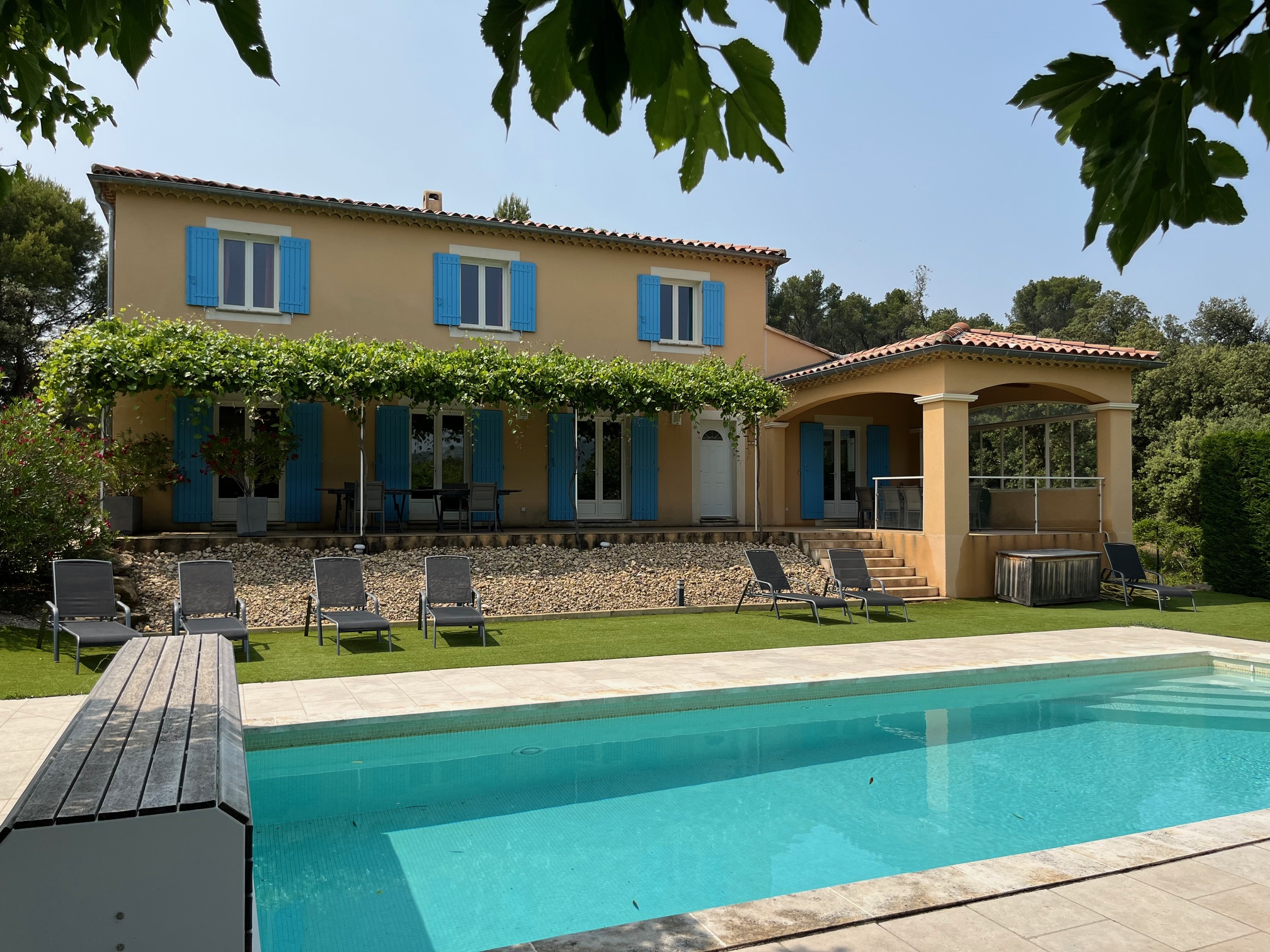 ...Le grand terrain qui les entoure de plus de 2 400 m' est aménagé d'une belle piscine pour...