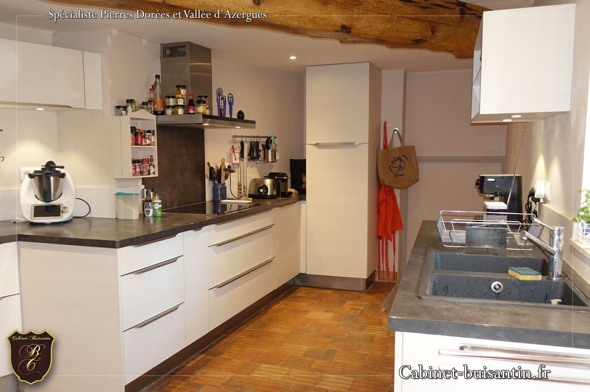 ...Elle est composée d'un séjour cathédrale avec le charme des pierres dorées et ses belles poutres,...