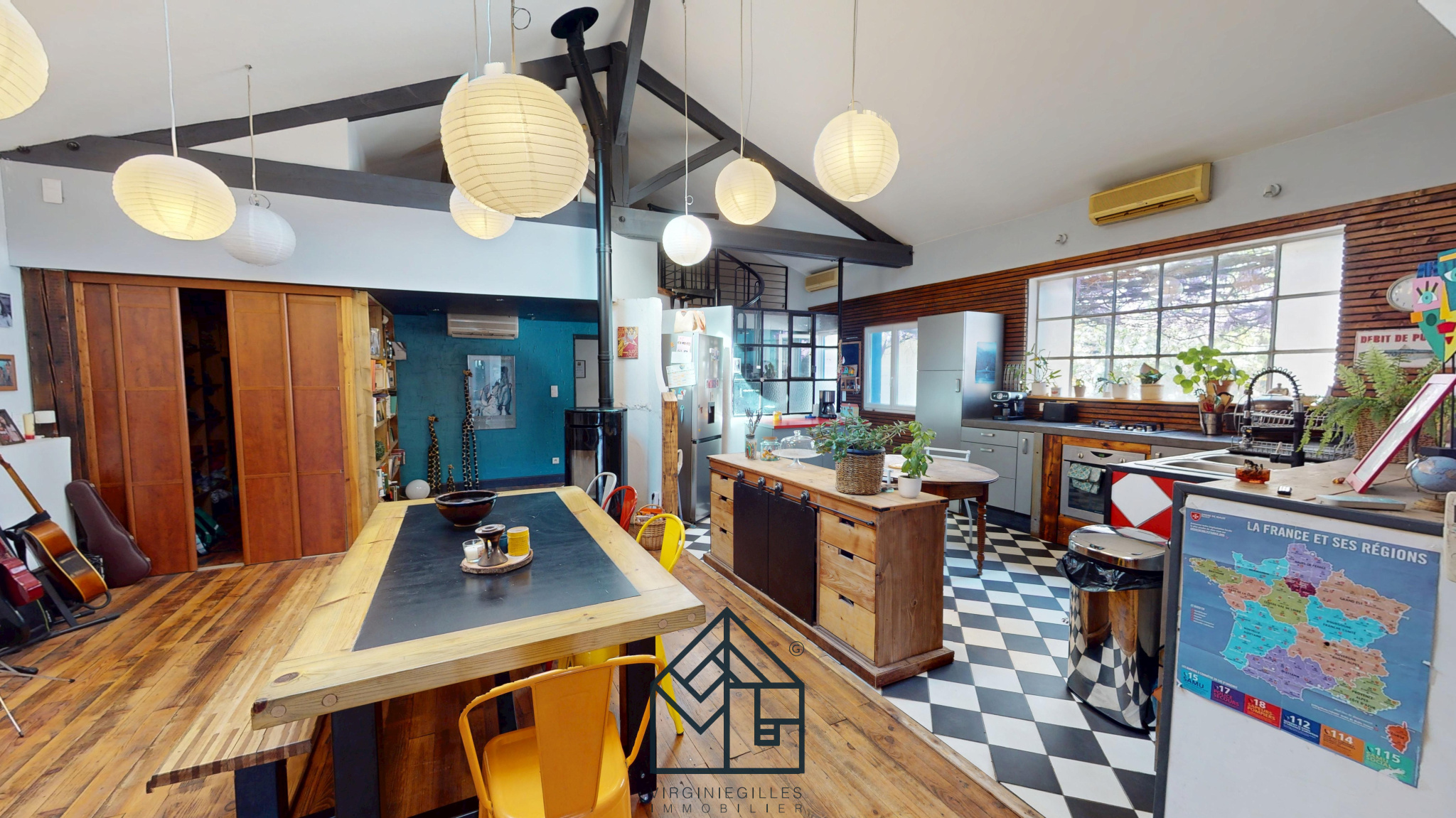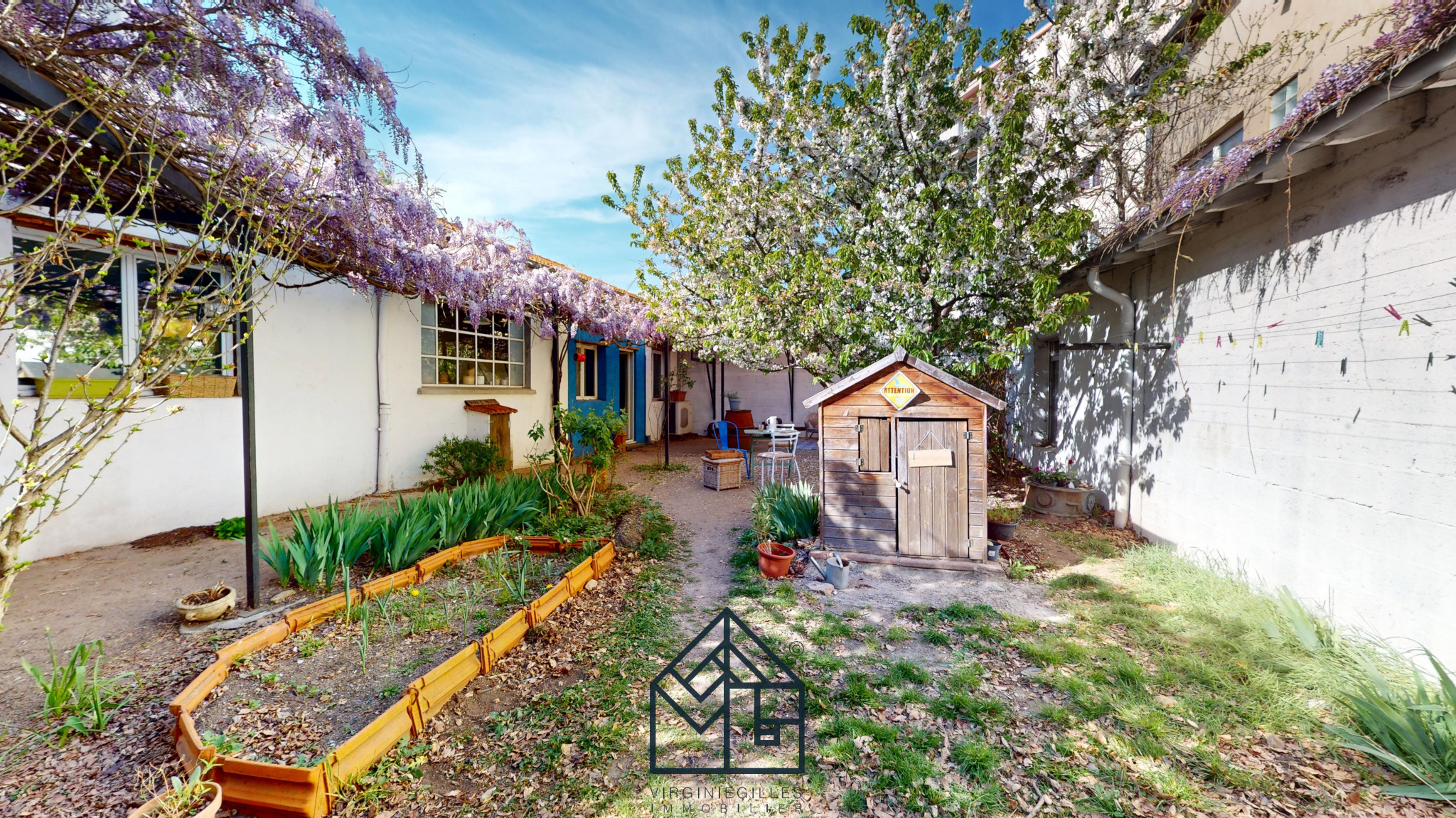 ...Nichée au fond d'une allée et à l'abri des regards, cette maison à l'esprit ancien atelier...